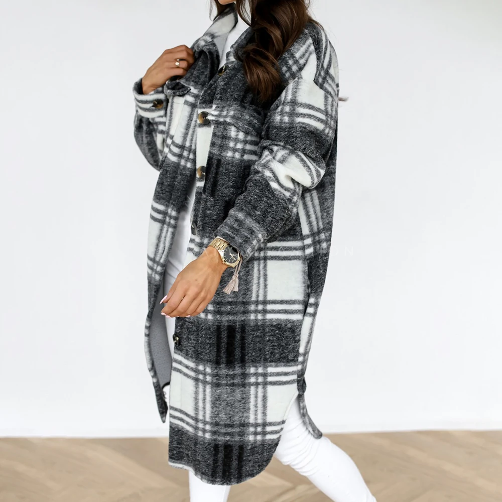 2021 Women's Autumn Winter CoatsPlaid Clothes Long Blouses Coat