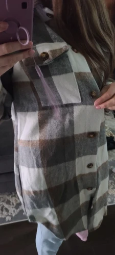 2020 Autumn Casual plaid shirtwomen coats Buttons pockets
