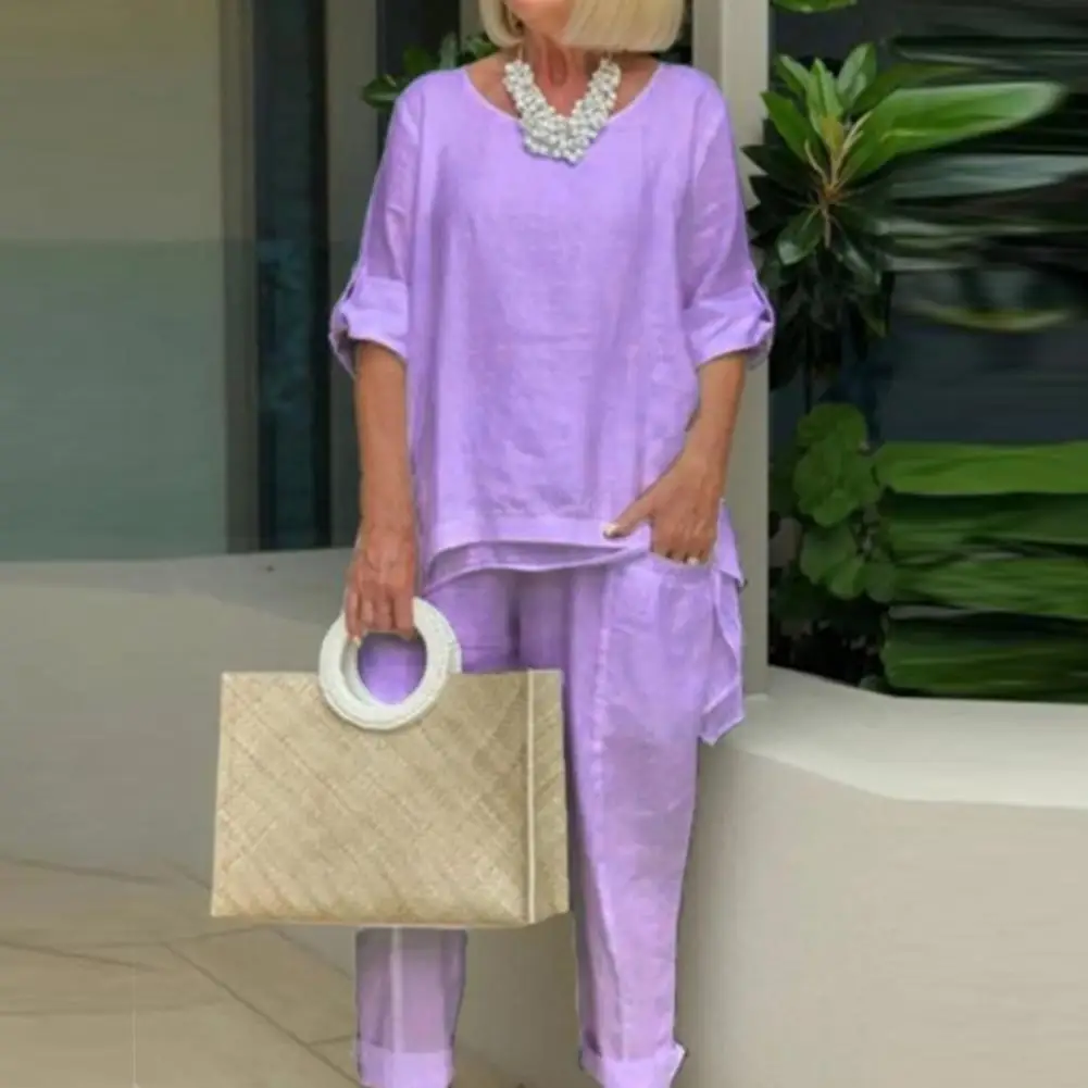 Осень 1 комплект простая Однотонная футболка с круглым вырезом Брюки с карманами Женский комплект домашней одежды с круглым вырезом для отдыхаХарактеристики:Однотонный топ с длинными рукавами с асимметричным подолом, что позволяет вам быть более темпераментным и очаровательным.Брюки с эластичной резинкой на талии обеспечивают комфорт при носке. Дизайн карманов позволяет удобно хранить мелкие предметы.Комплект с футболкой и штанами изготовлен из смесового льна материала, который является мягким, прохладным и удобным.В наличии шесть размеров: M, L, XL, 2XL, 3XL, 4XL.Свободный наряд подходит для повседневной носки, отпуска, праздника, дома, сна, улицы и т. д.Наименование товара: повседневный нарядМатериал: льняная смесьСтиль: ПовседневныйПол: женщинТип размера: ОбычныйТип Посадки: свободныйТип воротника: круглый вырезТалия: средняя талияДлина брюк: полная длина; Длина брюкСезон: ОсеньОсобенности: однотонный, дышащий, приятный для кожиИнформация о размере:[Наш Размер M] Длина топа: 62 см/24,4 дюйма, обхват груди: 104 см/40,9 дюйма, обхват талии брюк: 67 см/26,4 дюйма, длина брюк: 85 см/33,5 "(прибл.)[Наш Размер L] Длина топа: 63 см/24,8 ", обхват груди: 108 см/42,5", обхват талии брюк: 71 см/28 ", длина брюк: 86 см/33,9" (прибл.)[Наш Размер XL] Длина топа: 65 см/25,6 дюйма, обхват груди: 112 см/44,1 дюйма, обхват талии брюк: 75 см/29,5 дюйма, длина брюк: 87 см/34,3 "(прибл.)[Наш Размер 2XL] Длина топа: 66 см/26 дюймов, обхват груди: 116 см/45,7 дюйма, обхват талии брюк: 79 см/31,1 дюйма, длина брюк: 88 см/34,6 "(прибл.)[Наш Размер 3XL] Длина топа: 67 см/26,4 дюйма, обхват груди: 120 см/47,2 дюйма, обхват талии брюк: 83 см/32,7 дюйма, длина брюк: 89 см/35 "(прибл.)[Наш Размер 4XL] Длина топа: 68 см/26,8 дюйма, обхват груди: 124 см/48,8 дюйма, обхват талии брюк: 84 см/33,1 дюйма, длина брюк: 90 см/35,4 "(прибл.)Примечания:Пожалуйста, обратитесь к нашей таблице размеров и выберите правильный размер.