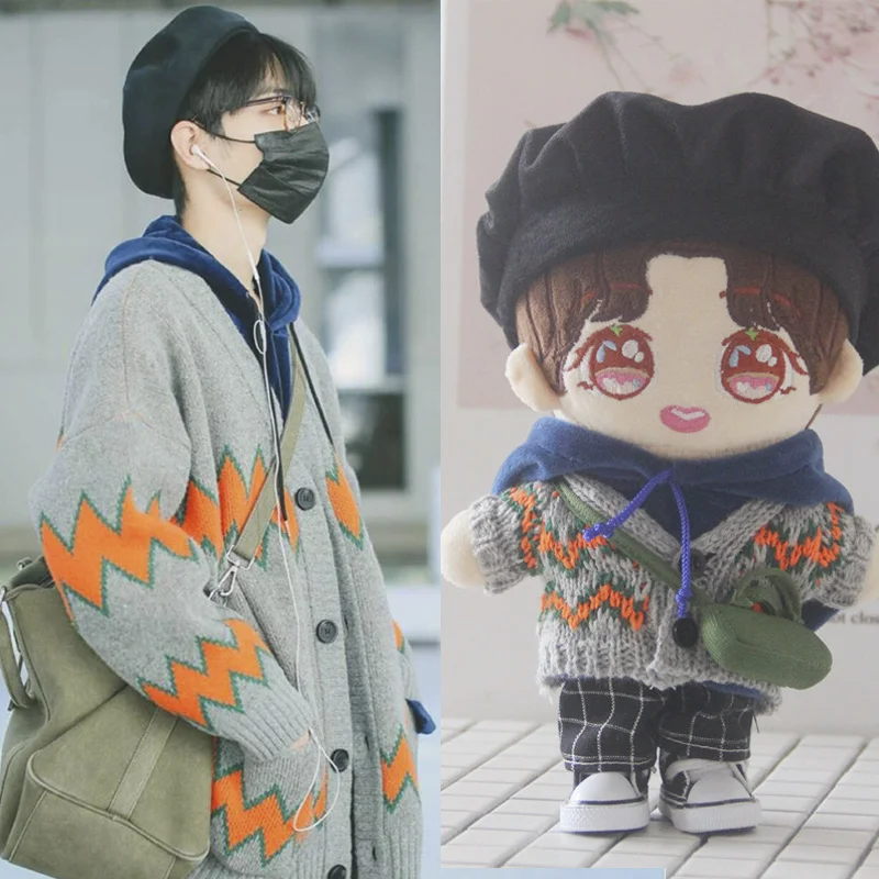 Хлопковый комплект одежды для кукол 20 см, аэропорт Сяо Чжань, Звездный идол, свитер с капюшоном, рюкзак, берет, аксессуары, наряд для