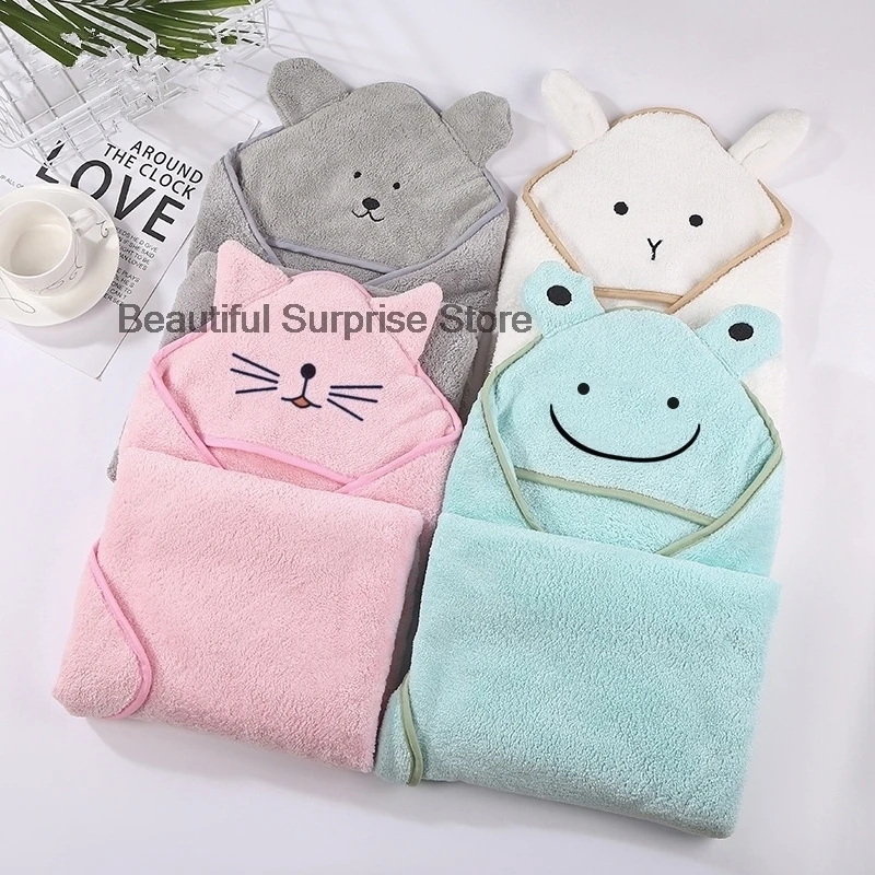Мультяшное Коралловое одеяло с капюшоном, мягкие банные полотенца из микрофибры для новорожденных, Пеленальное спальное одеяло для младенцев, размер 90*90 см