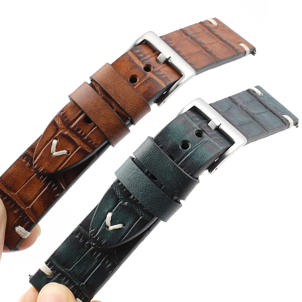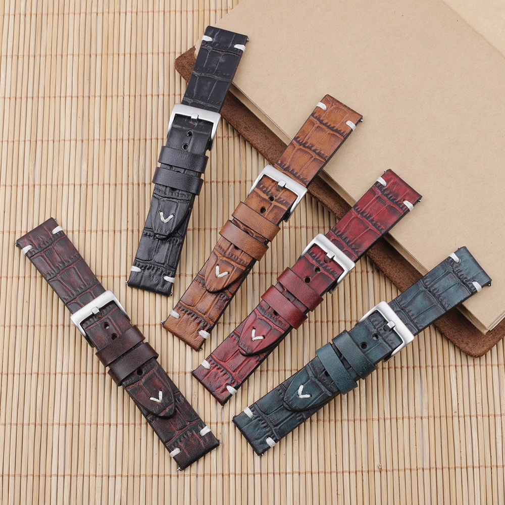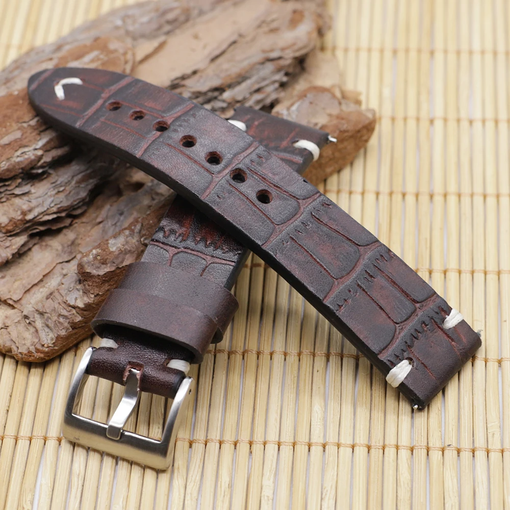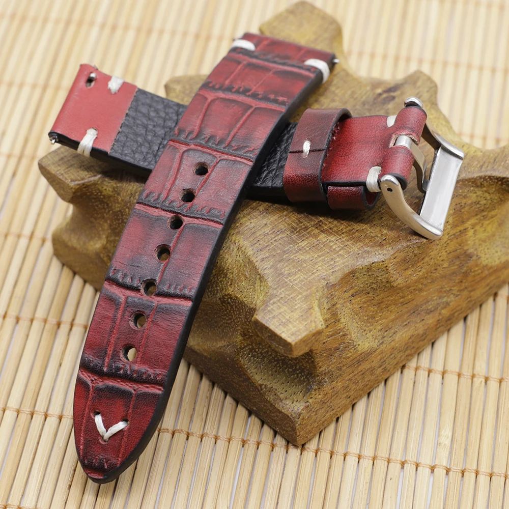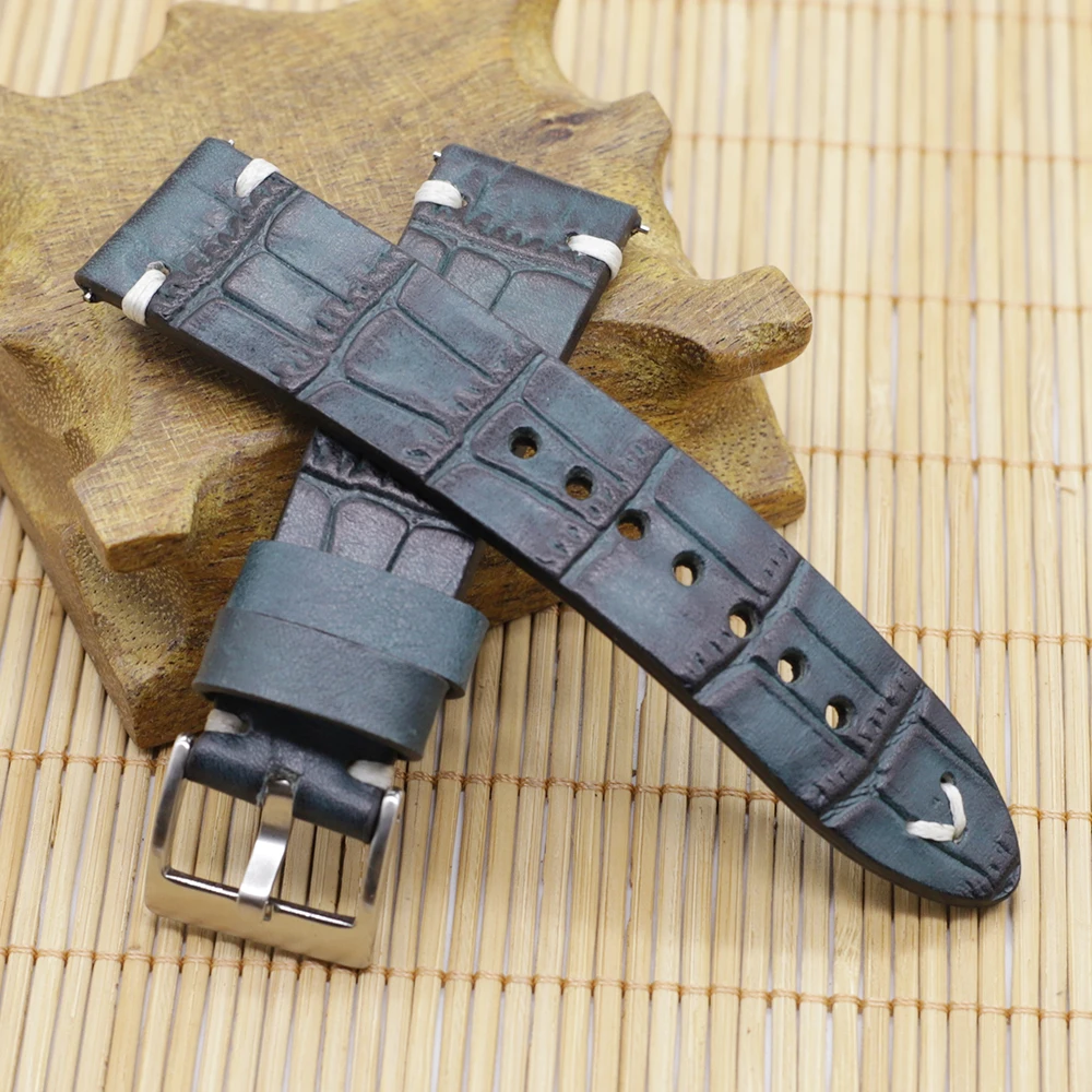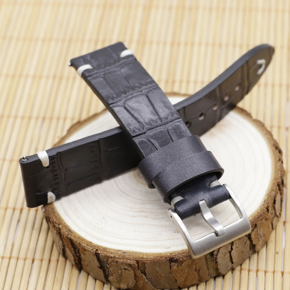 Модный ремешок для часов из натуральной кожи 18 мм, 20 мм, 22 мм, 24 мм, прозрачный персональный ремешок с текстурой крокодила, браслет для женщин и мужчин, ремешок для часов
