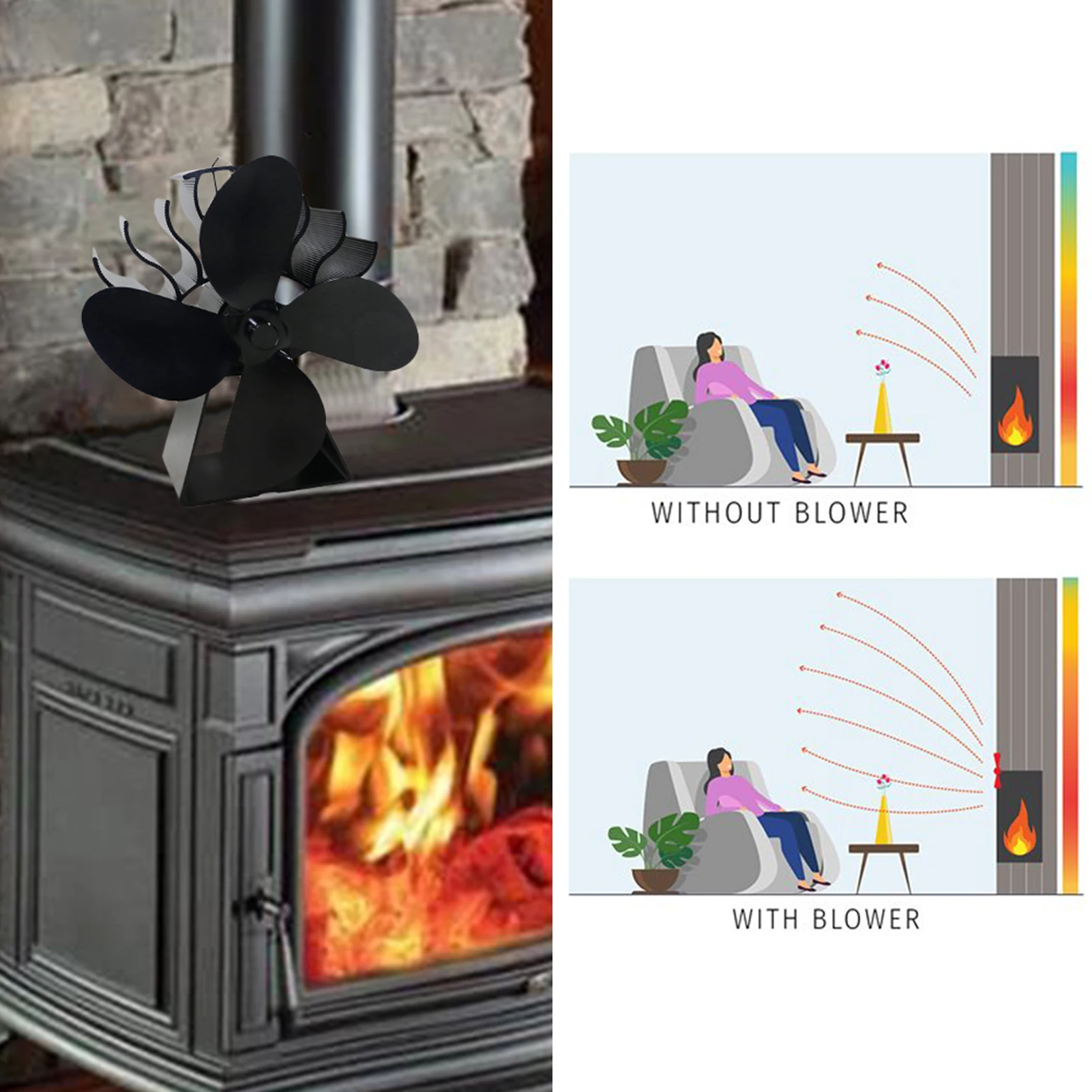Черный вентилятор для камина 4 лопастей энергосберегающий вентилятор для печи, работающий от тепловой энергии деревянная горелка экологичный вентилятор Chimenea эффективное распределение тепла