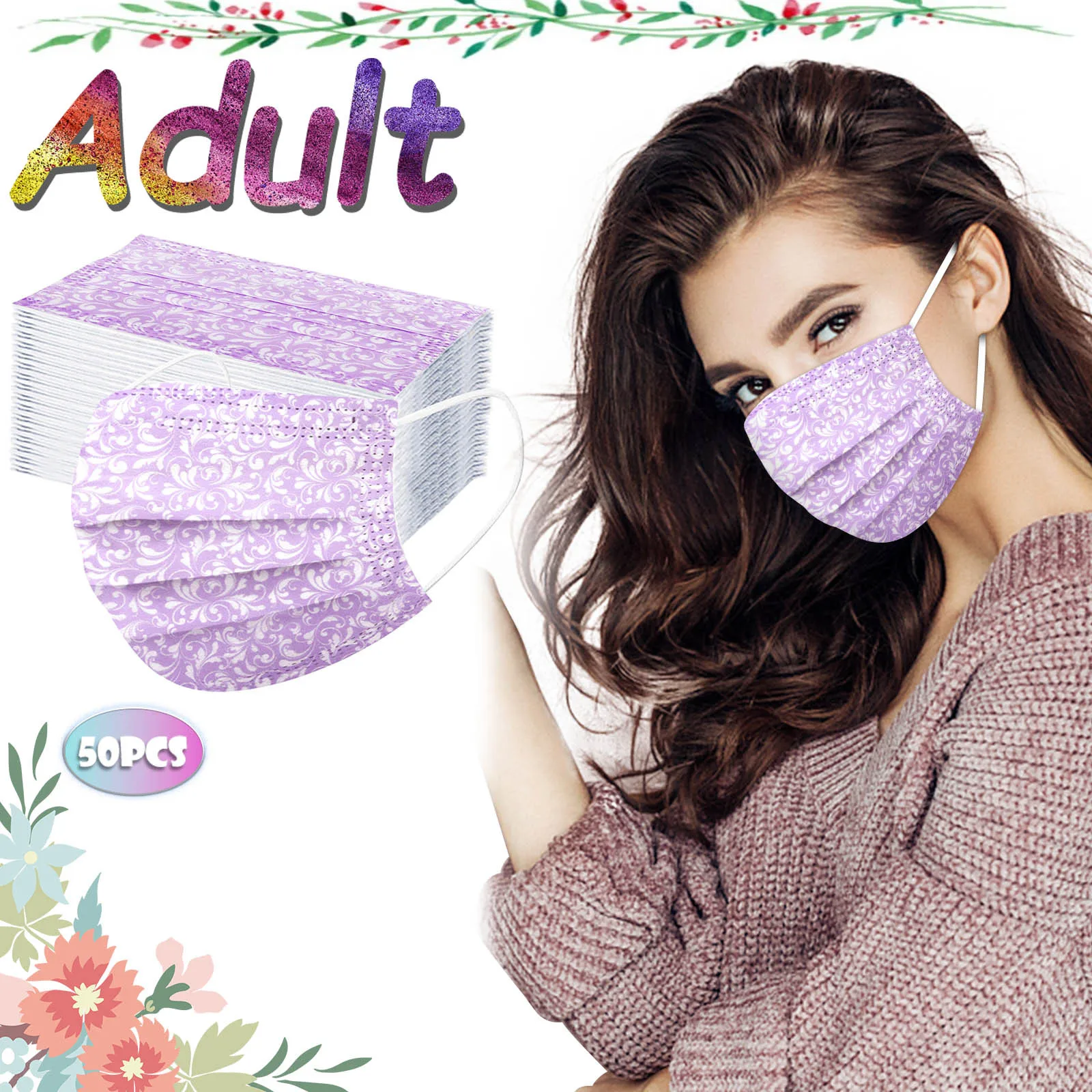 50 шт., гигиеническая маска для лица для взрослых, одноразовые маски, 3-слойные маски, маски для Хэллоуина, косплея, маскарадные маски, хирургические маски