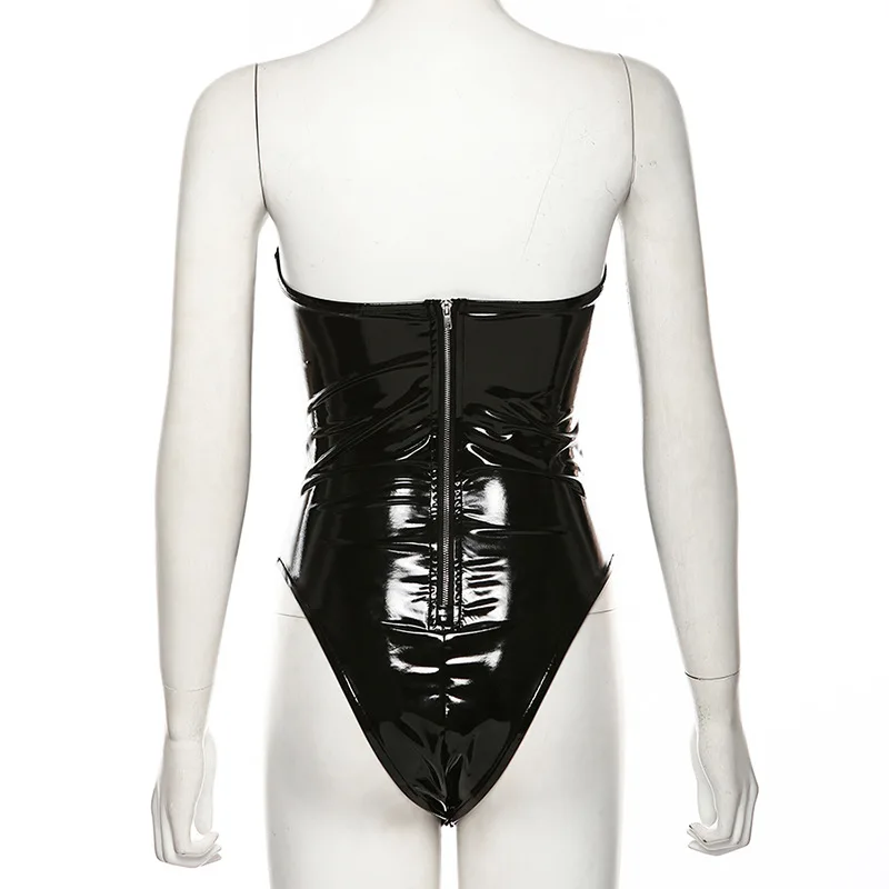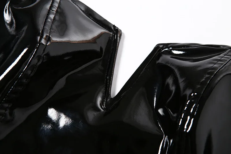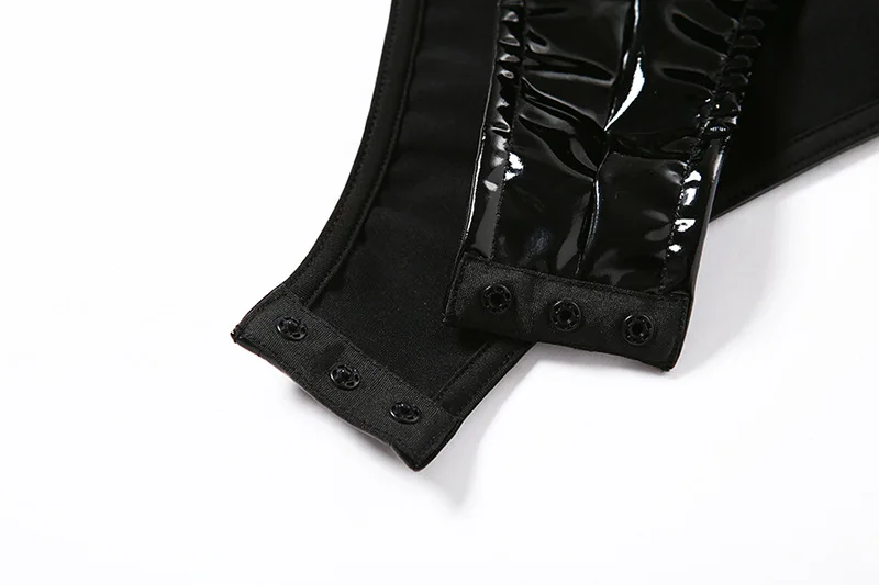 Новинка Осень-зима 2021, Женский креативный сексуальный тонкий комбинезон из искусственной кожи с открытой спиной, женский черный пикантный Модный комбинезон из искусственной кожи с V-образным вырезом