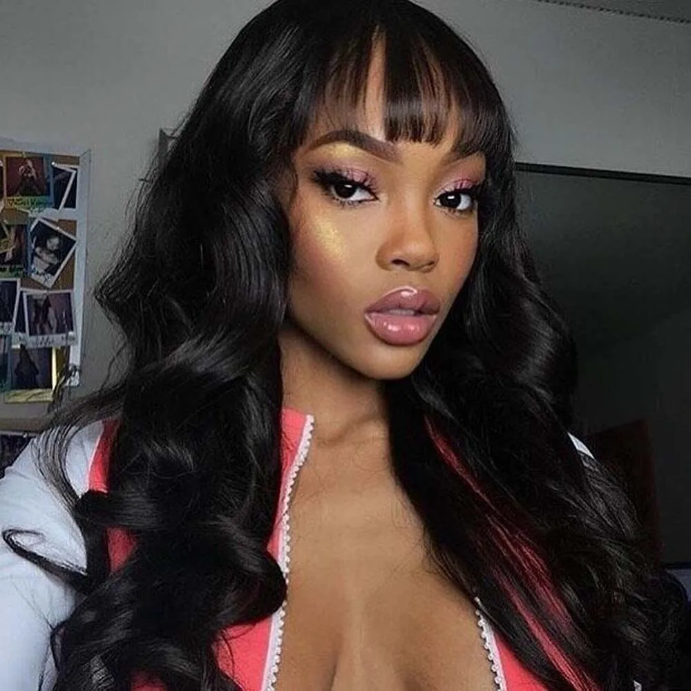 Парики из человеческих волос с челкой, 150% волнистые парики с выре...