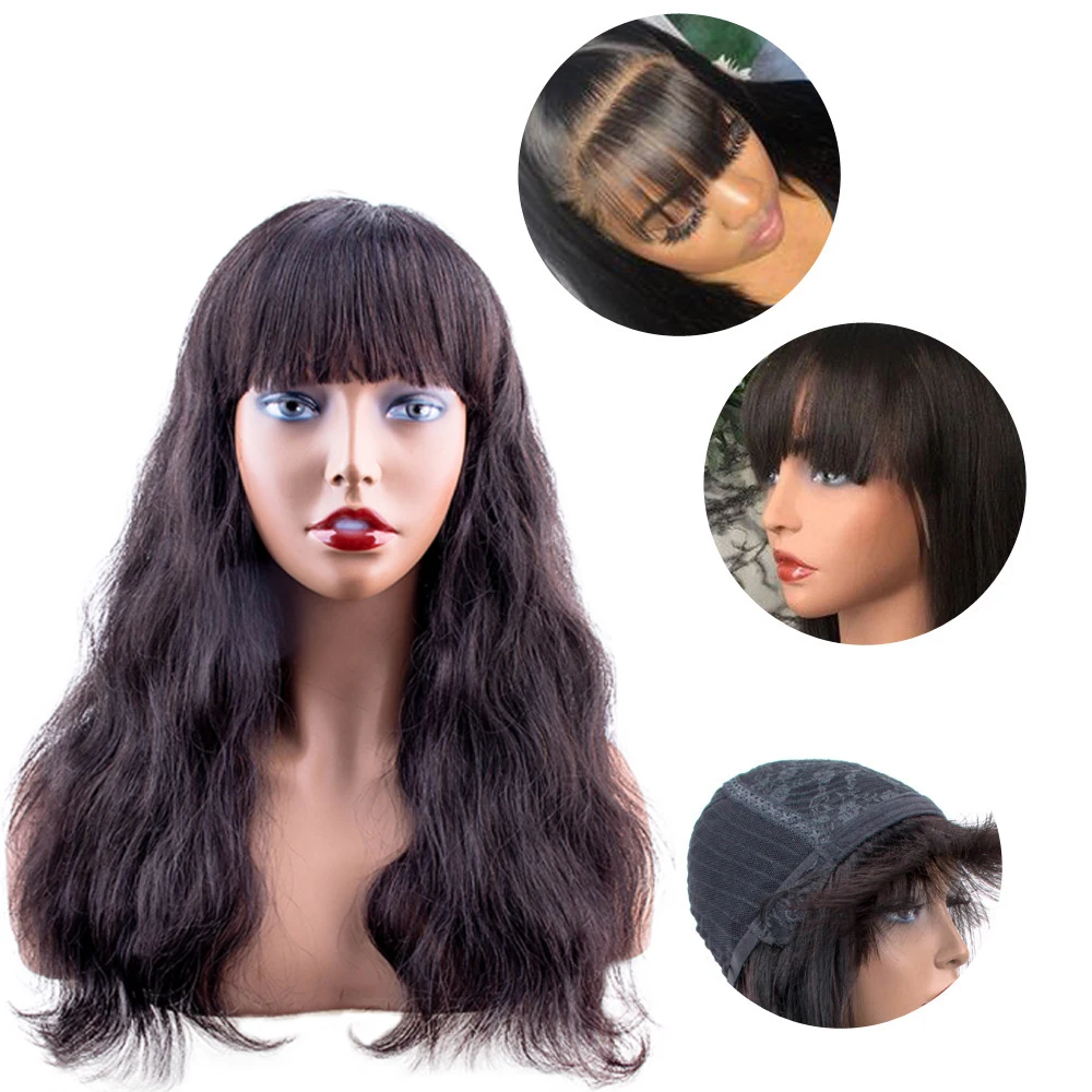 MQYQ перуанские прямые человеческие волосы парики с челкой Remy вол...