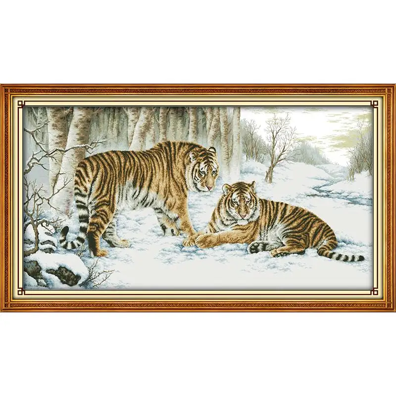 Два Тигры животные узор вышивка крестиком набор 11CT 14CT Печать холст хлопок нить шитье DIY набор украшение дома подарок