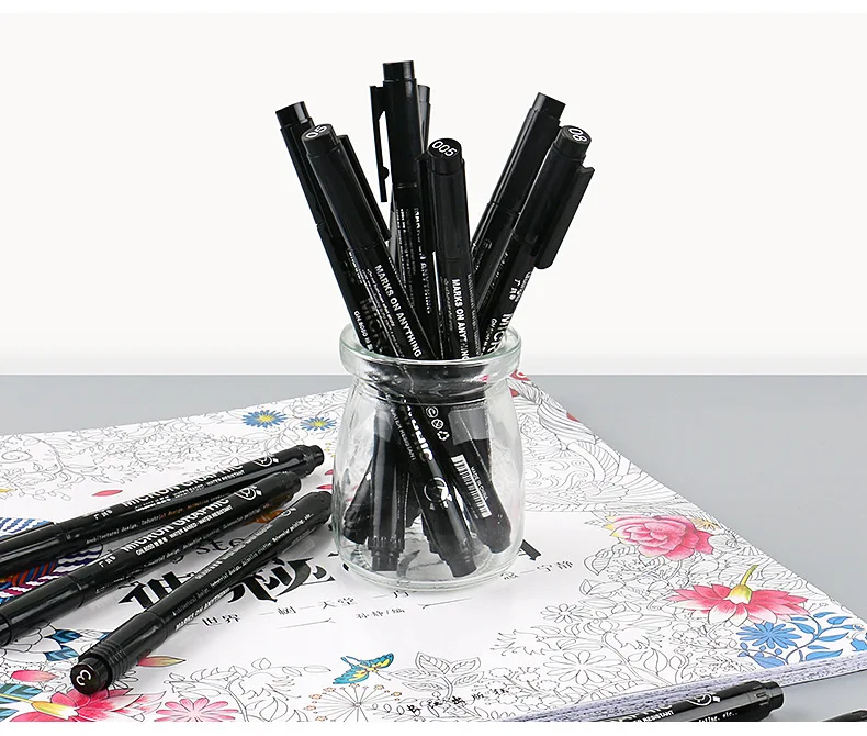 Ручка для рисования Fineliner, сверхтонкие линии, черные чернила, 0...