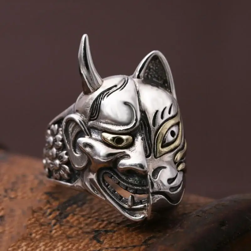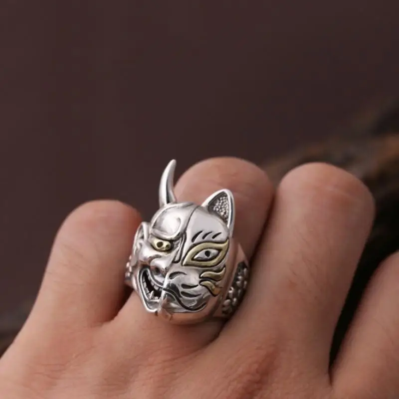 Мужское кольцо в готическом стиле, металлическое кольцо с лицом дья...