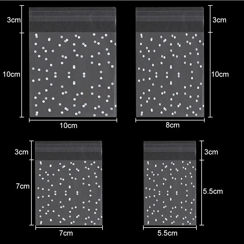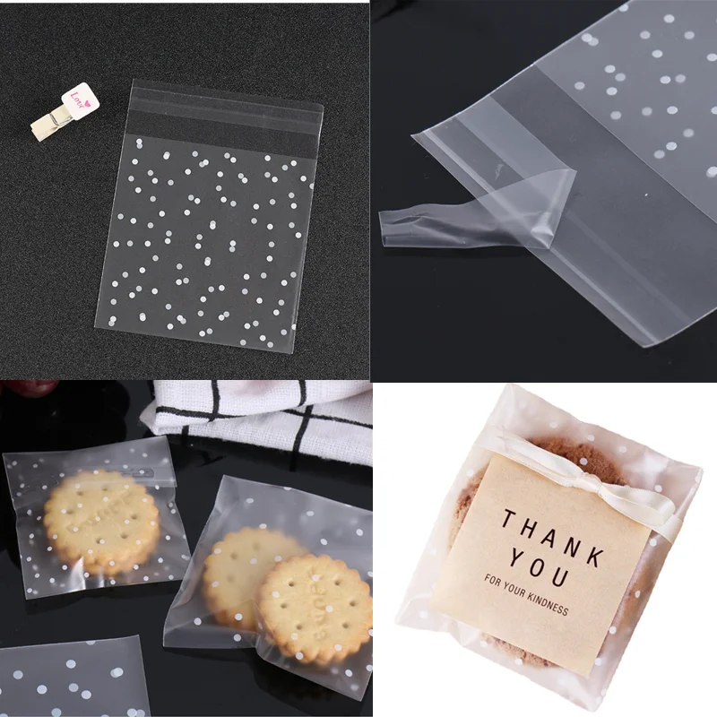 100 шт., пластиковые прозрачные самоклеящиеся пакеты в горошек