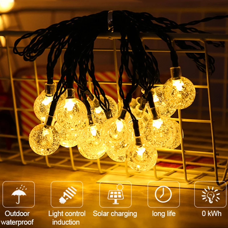 Рождественская Декоративная гирлянда на солнечной батарее, s 12M 100, светодиодный Кристальный светильник, s водонепроницаемый уличный светильник на солнечной батарее для внутреннего дворика для дома