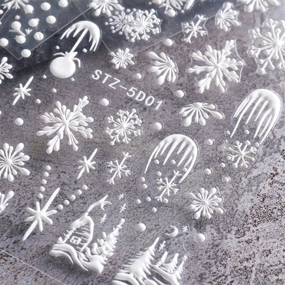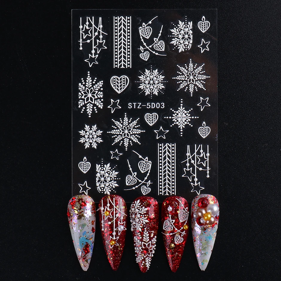 5D зимние рождественские наклейки для украшения ногтей 3D рельефные Подвески снежинки французский дизайн ногтей Гель-лак наклейки для маникюра