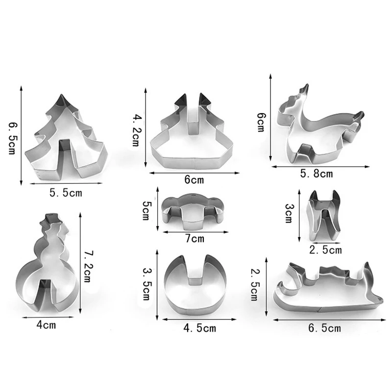 8 шт. 3D Рождественские формочки для печенья из нержавеющей стали, форма для торта, печенья, аксессуары для украшения выпечки своими руками, инструменты для торта
