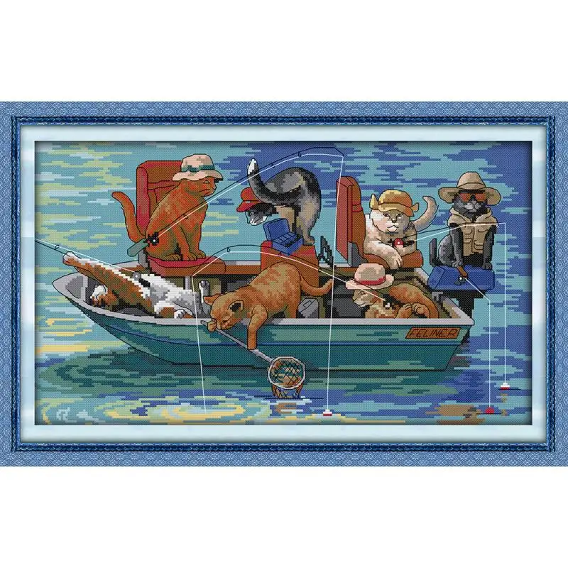 Набор для вышивания крестиком с изображением кошки и рыбалки, 11CT 14CT, Набор для вышивания хлопковой нитью, украшение для детской комнаты