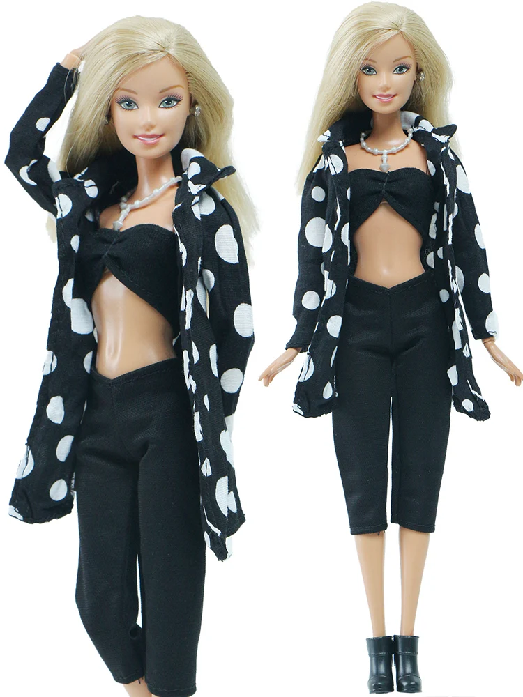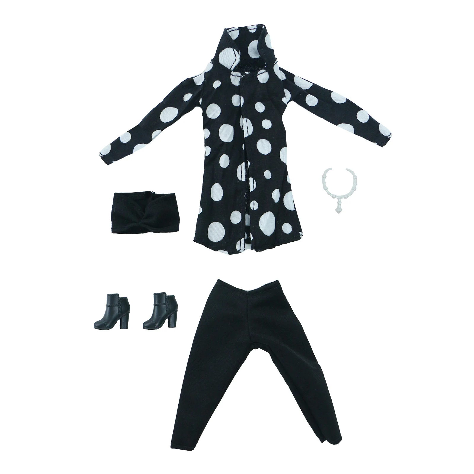 Крутая женская кофта в горошек, топ, бюстгальтер, штаны, ожерелья, сапоги, классическая черная одежда для девочек, Одежда для куклы Барби, игрушка с аксессуарами