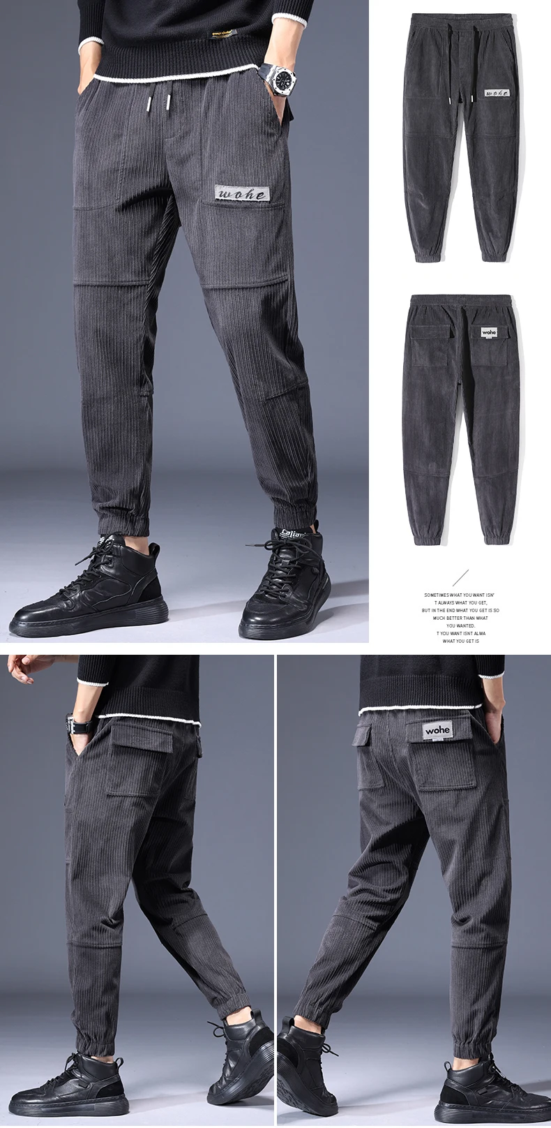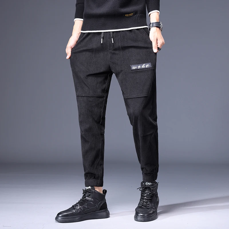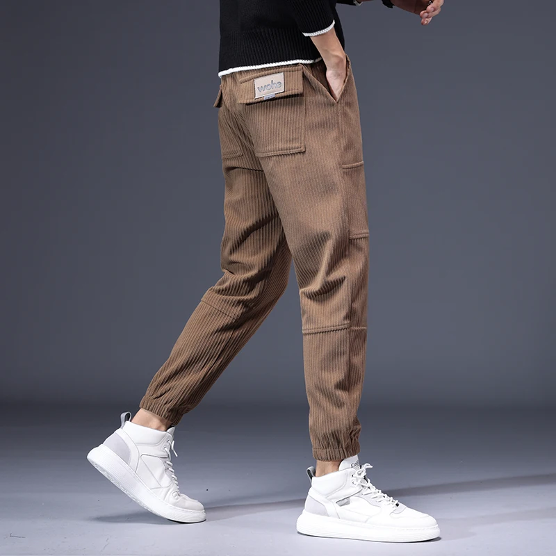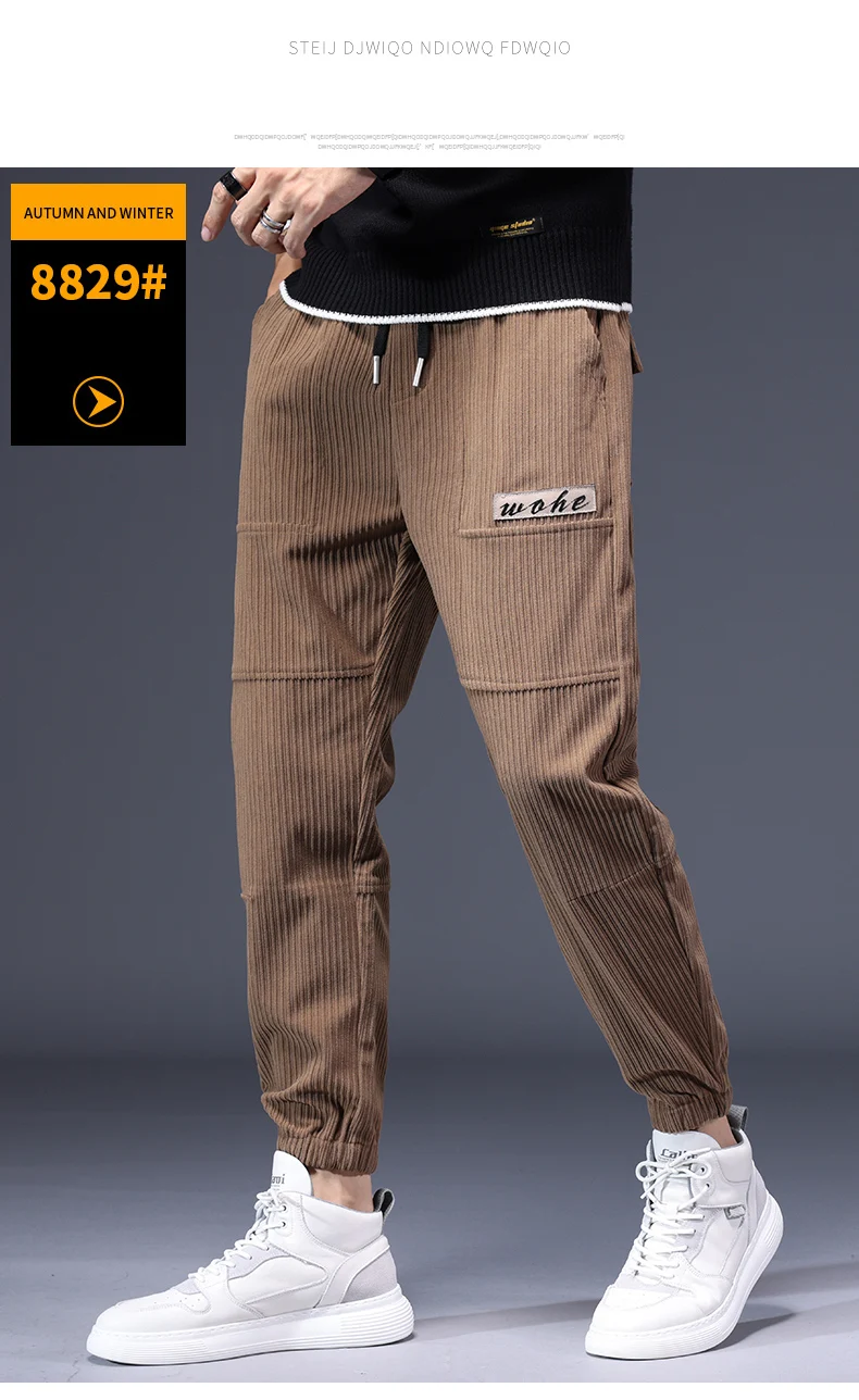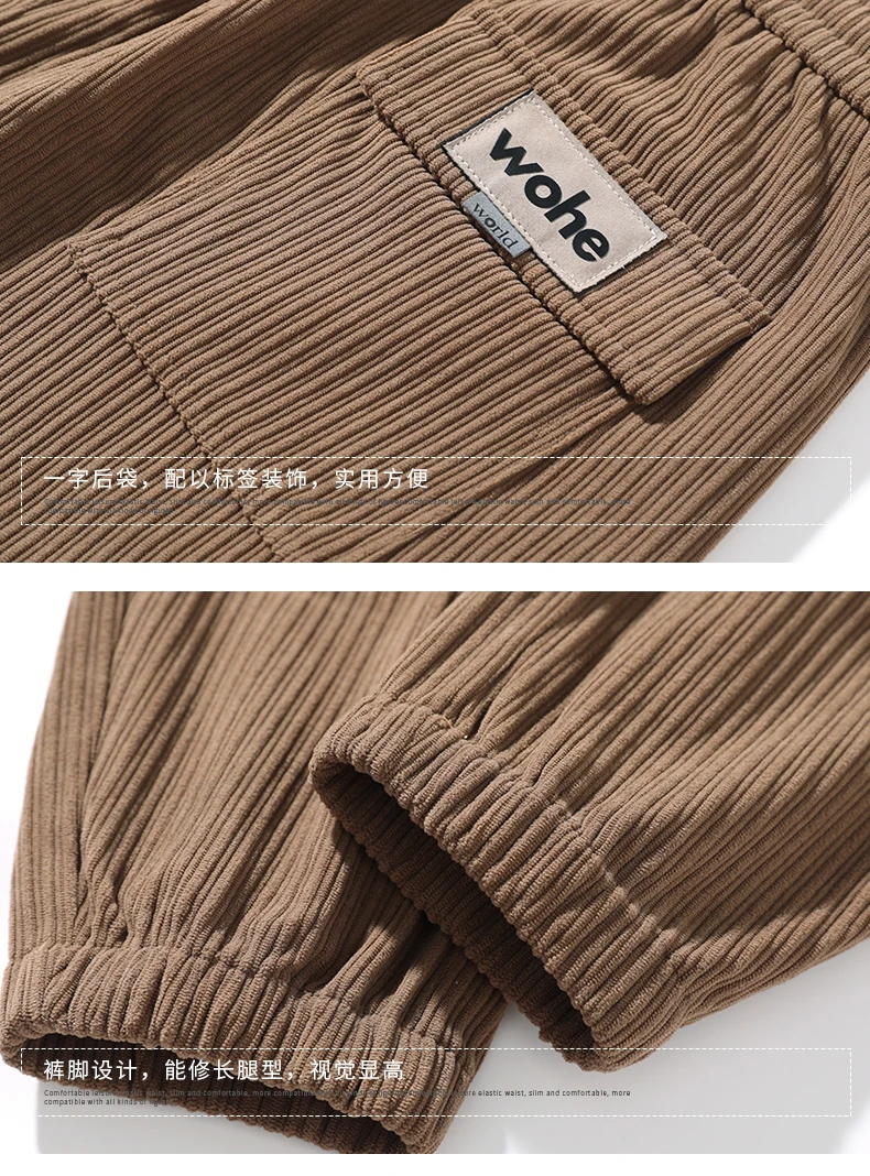 Шаровары мужские вельветовые, плотные повседневные однотонные брюки оверсайз с завязками, коричневые уличные штаны в Корейском стиле, Осень-зима