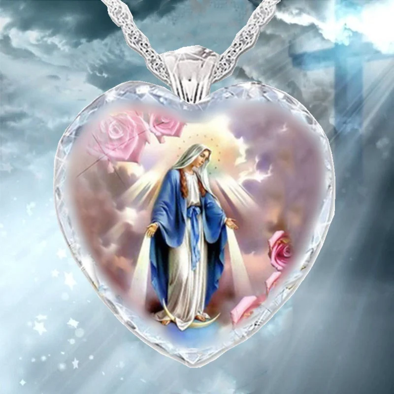 Женское Ожерелье с кулоном в форме сердца из хрустального стекла с изображением девы Марии, новый модный религиозный амулет, аксессуары, ювелирные изделия для вечеринок