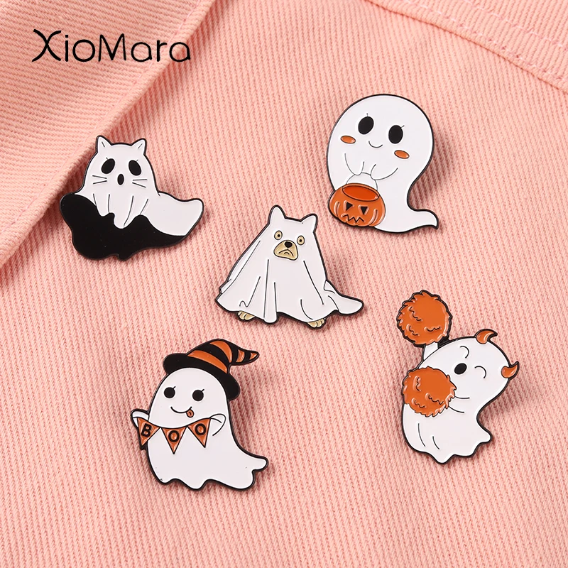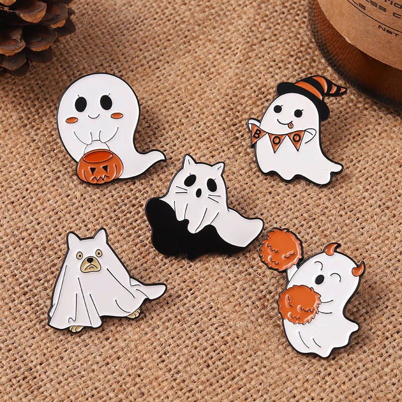 Счастливого Хэллоуина! Эмалированные булавки с призраками, страшный...