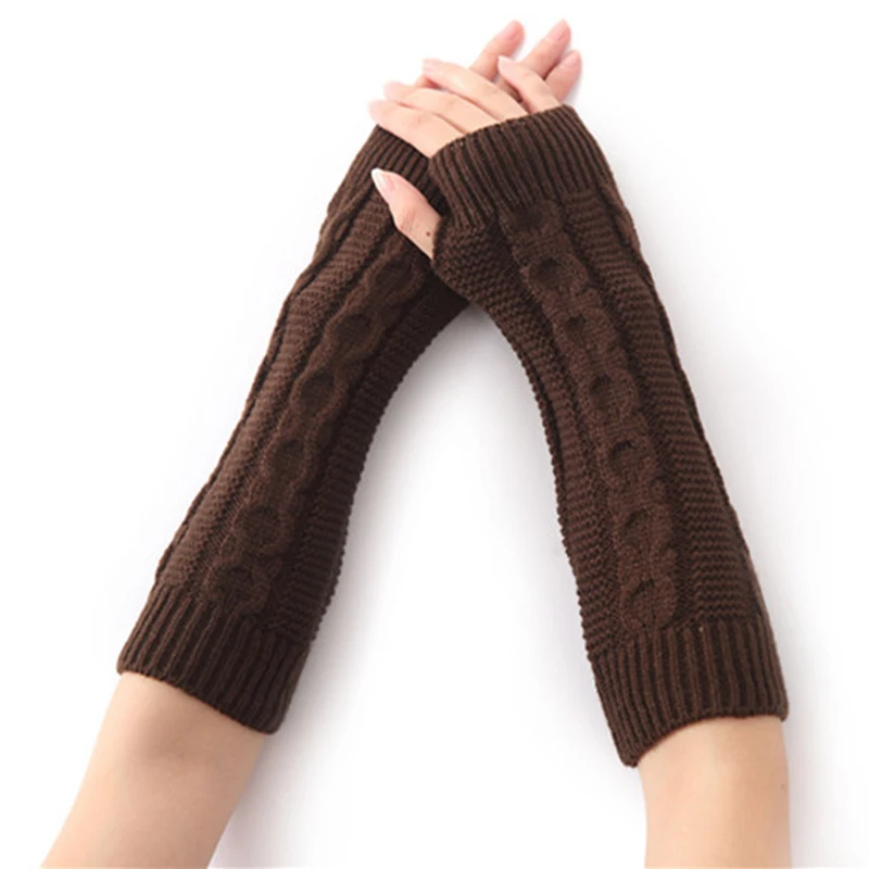 Модные зимние длинные перчатки без пальцев, Повседневные вязаные ру...