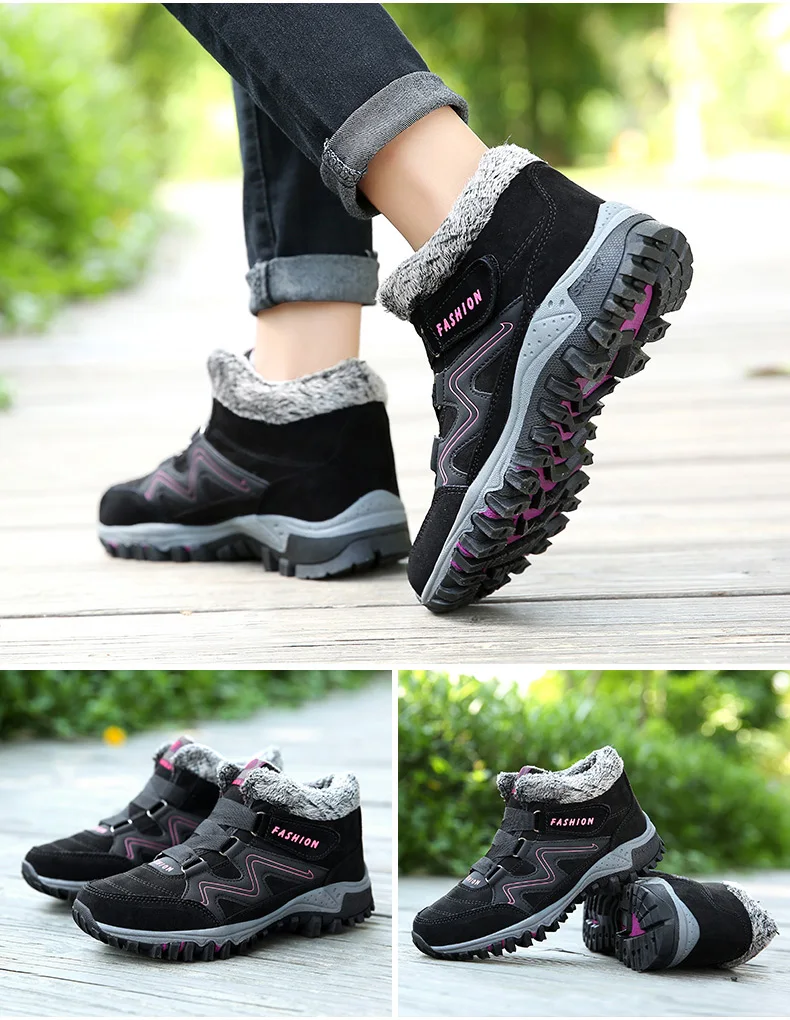 Женские походные ботинки, зимние Нескользящие уличные ботинки с мех...