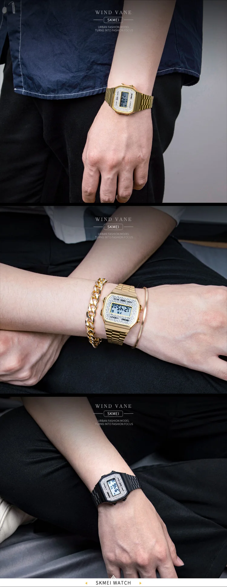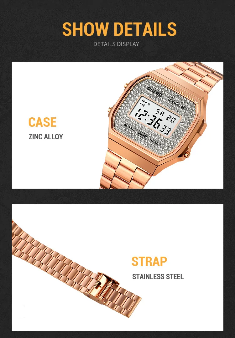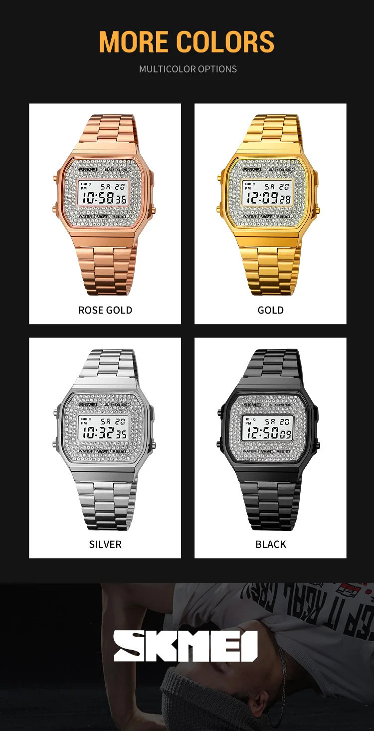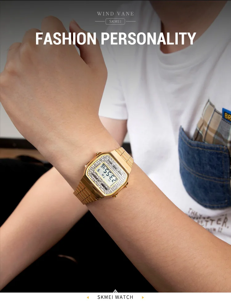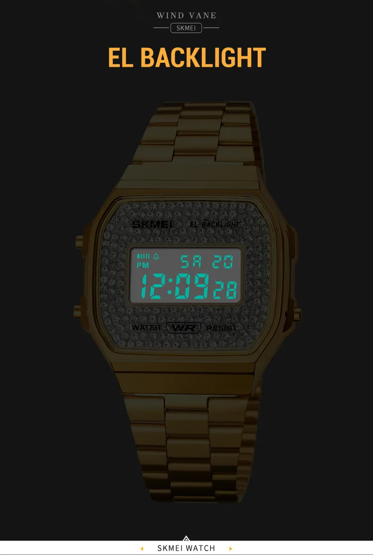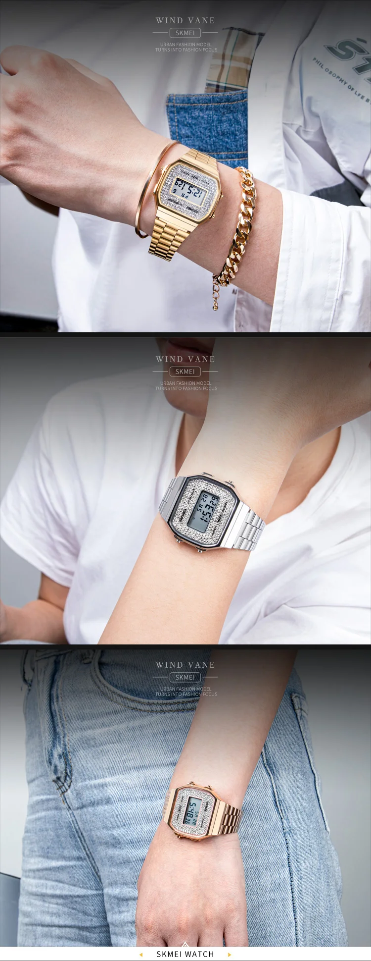Часы SKMEI женские цифровые в романтическом стиле, водонепроницаемые наручные, с календарем и хронографом, с кристаллическим циферблатом, 1808