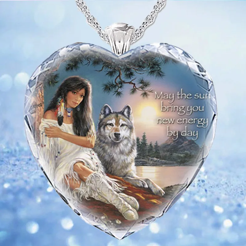 Ожерелье с подвеской в форме сердца из хрустального стекла для индийской девушки и волка Женское Ожерелье Новые Модные металлические аксессуары ювелирные изделия Вечерние