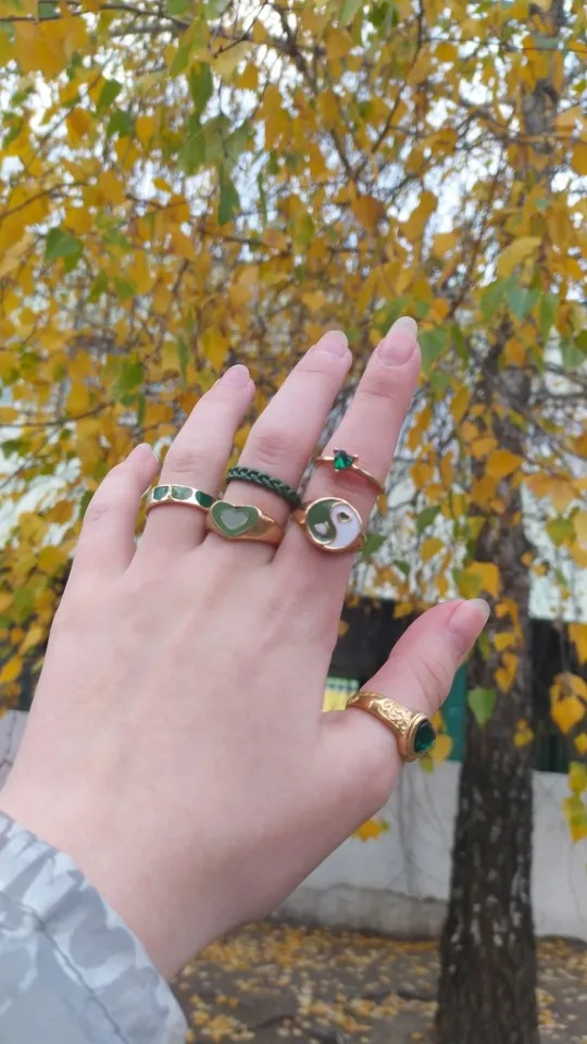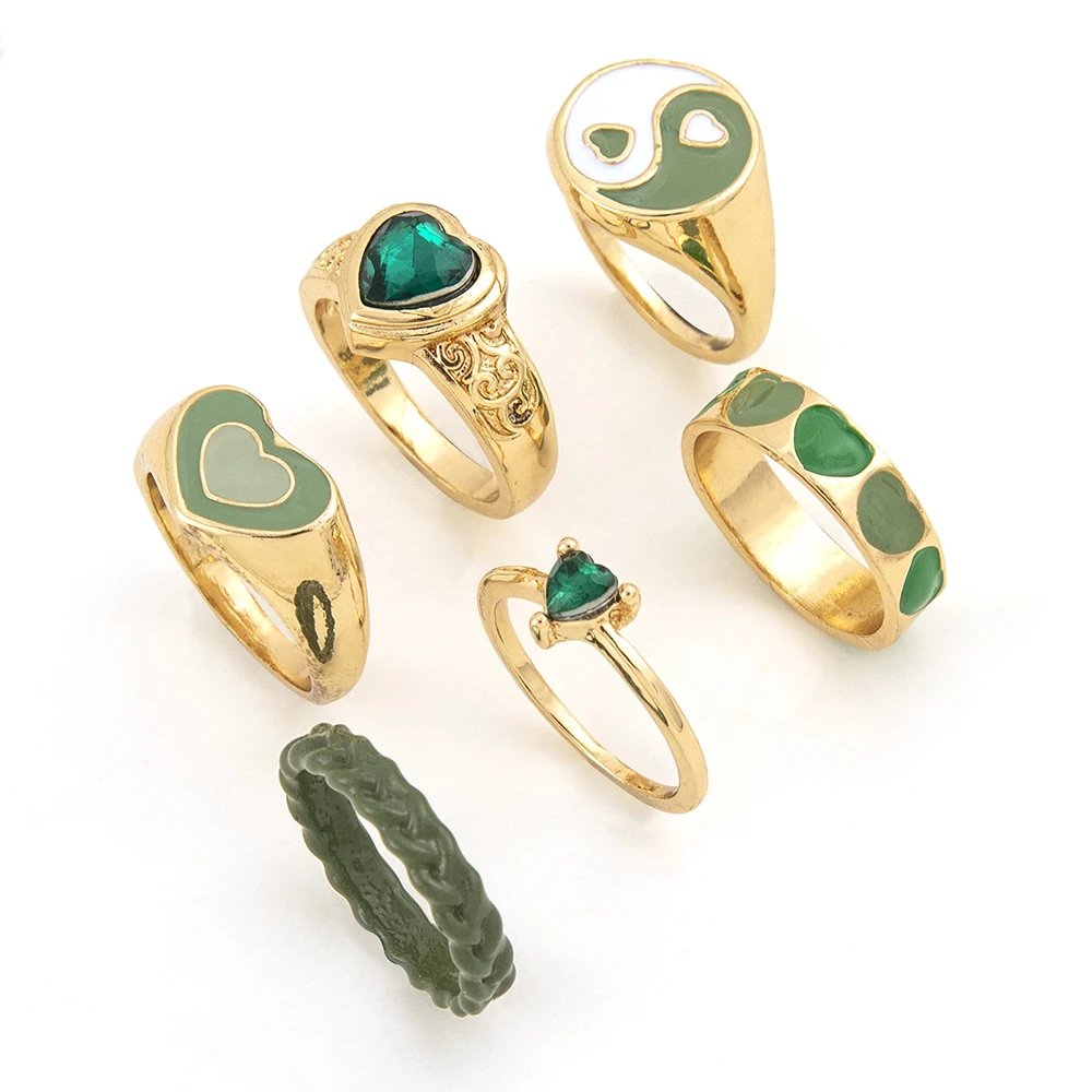 Sindlan 6 шт. эстетические золотые кольца с кристаллами для женщин Kpop милые зеленые сердца из смолы женские кольца Y2k 2021 бижутерия