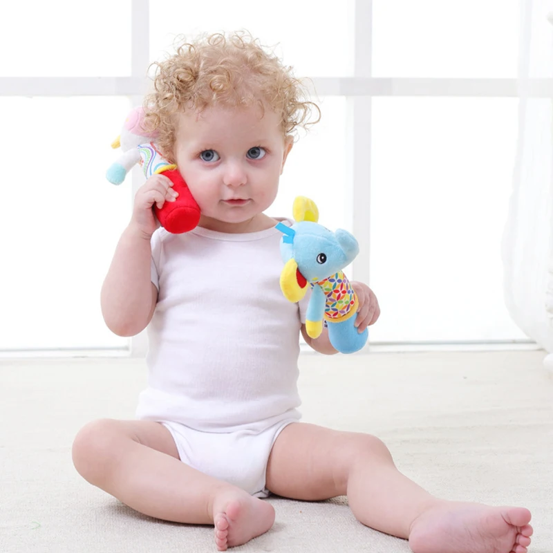 Мультяшные животные BB Stick для новорожденных Развивающие детские игрушки мягкие плюшевые мобильные погремушки игрушки для детей слон детские игрушки Handbell 0-3 Y