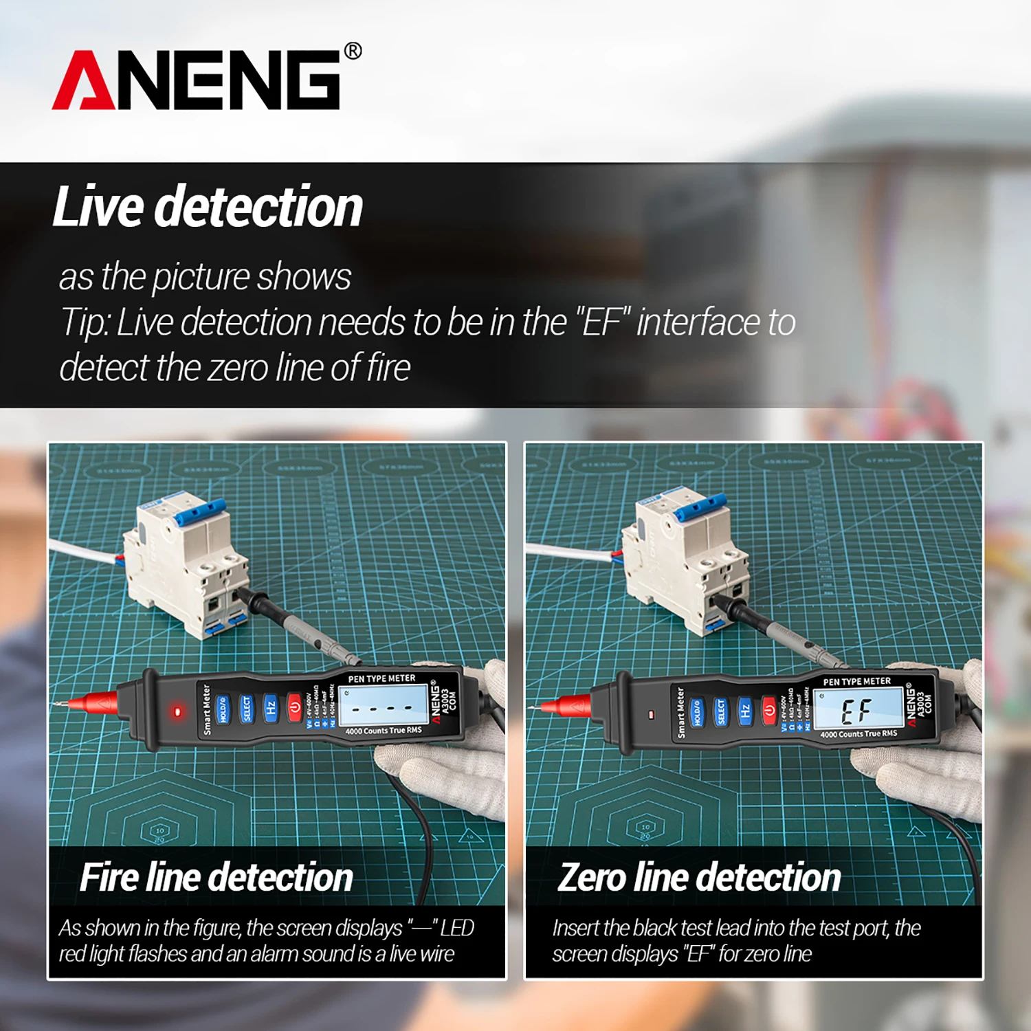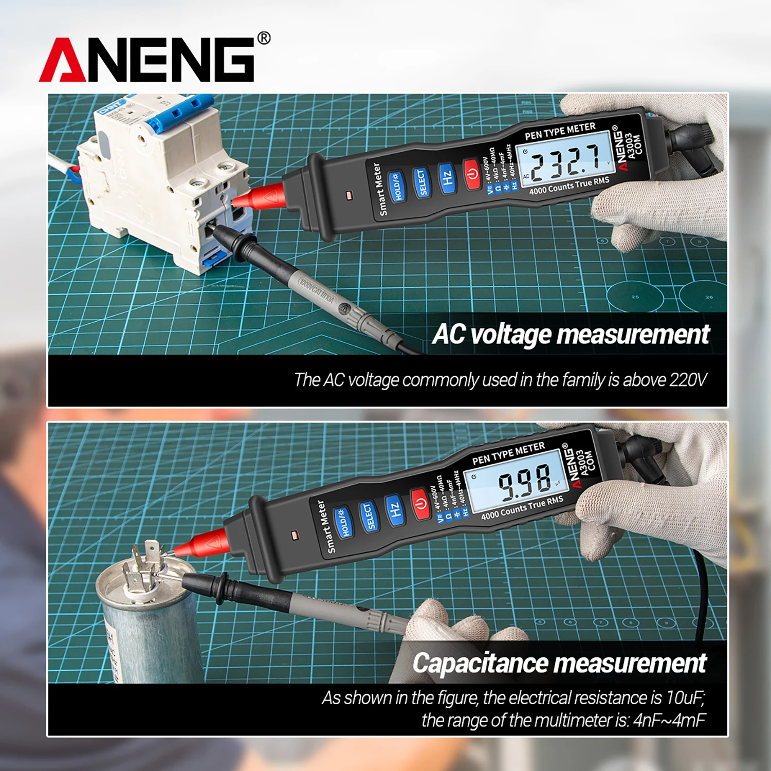 Цифровой мультиметр ANENG в виде ручки, Вольтметр постоянного и переменного тока, Омметр, тестер сопротивления в реальном времени, 4000 отсчетов, ЖК-тестер напряжения