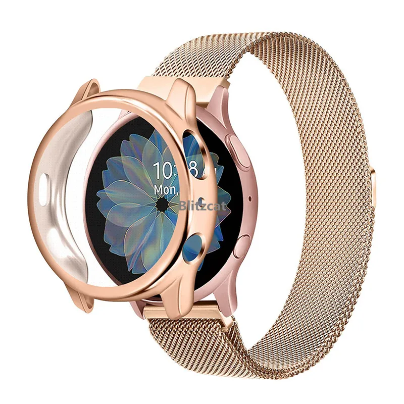 Металлическая Магнитная Петля 2 в 1 для Samsung Galaxy Watch Active 2 3 4 44 мм 45 мм 46 мм, ремешок с защитным чехлом из ТПУ, браслет для экрана
