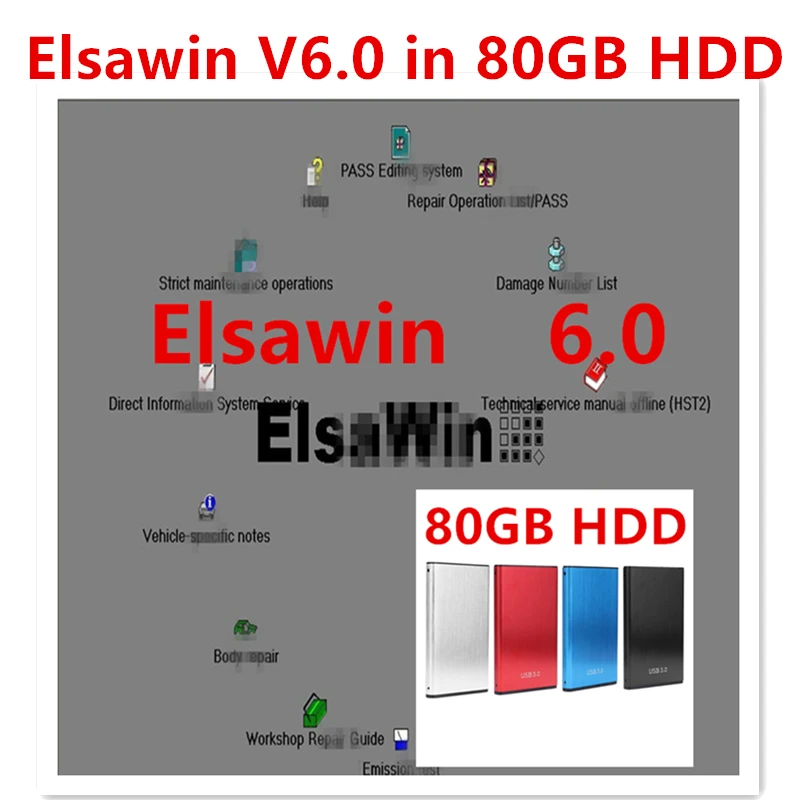 2021 программное обеспечение для ремонта автомобиля ELSAWIN 6,0 для VAG для Audi для VW ремонт автомобиля данные Elsa6.0 Эльза обновление до 2017 года в 80 Гб HDD