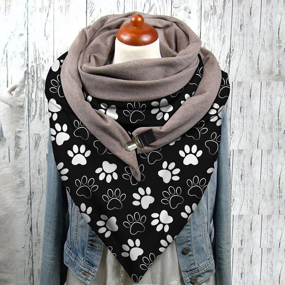 Женские теплые шарфы на пуговицах с принтом кошачьих лап, мягкая накидка, повседневные шали с двухслойной пряжкой, кашемировый треугольный шарф, женский шарф ручной работы