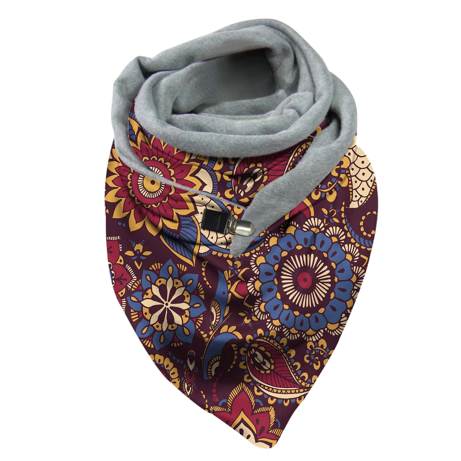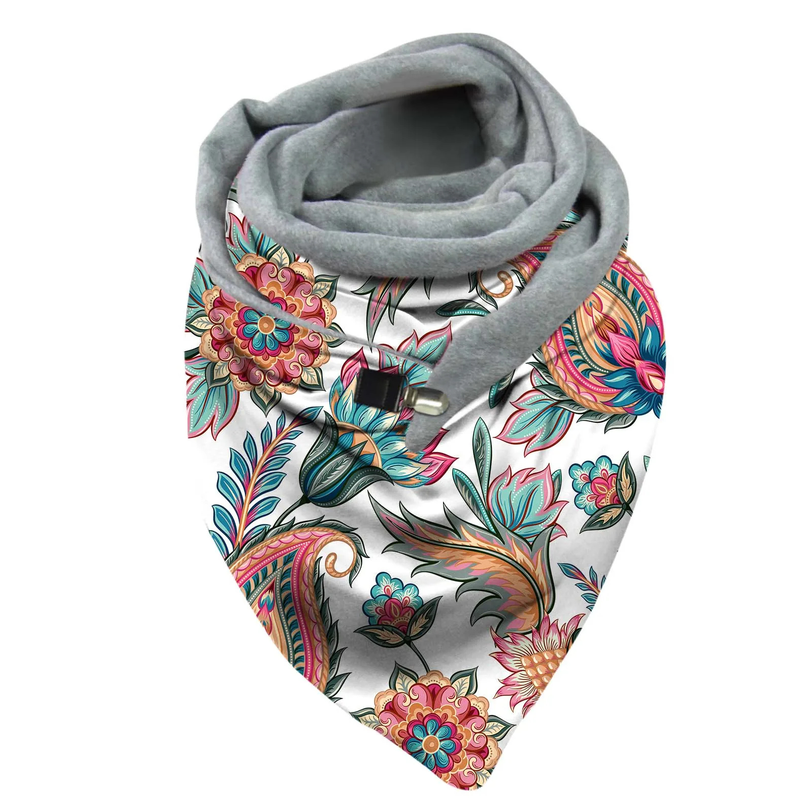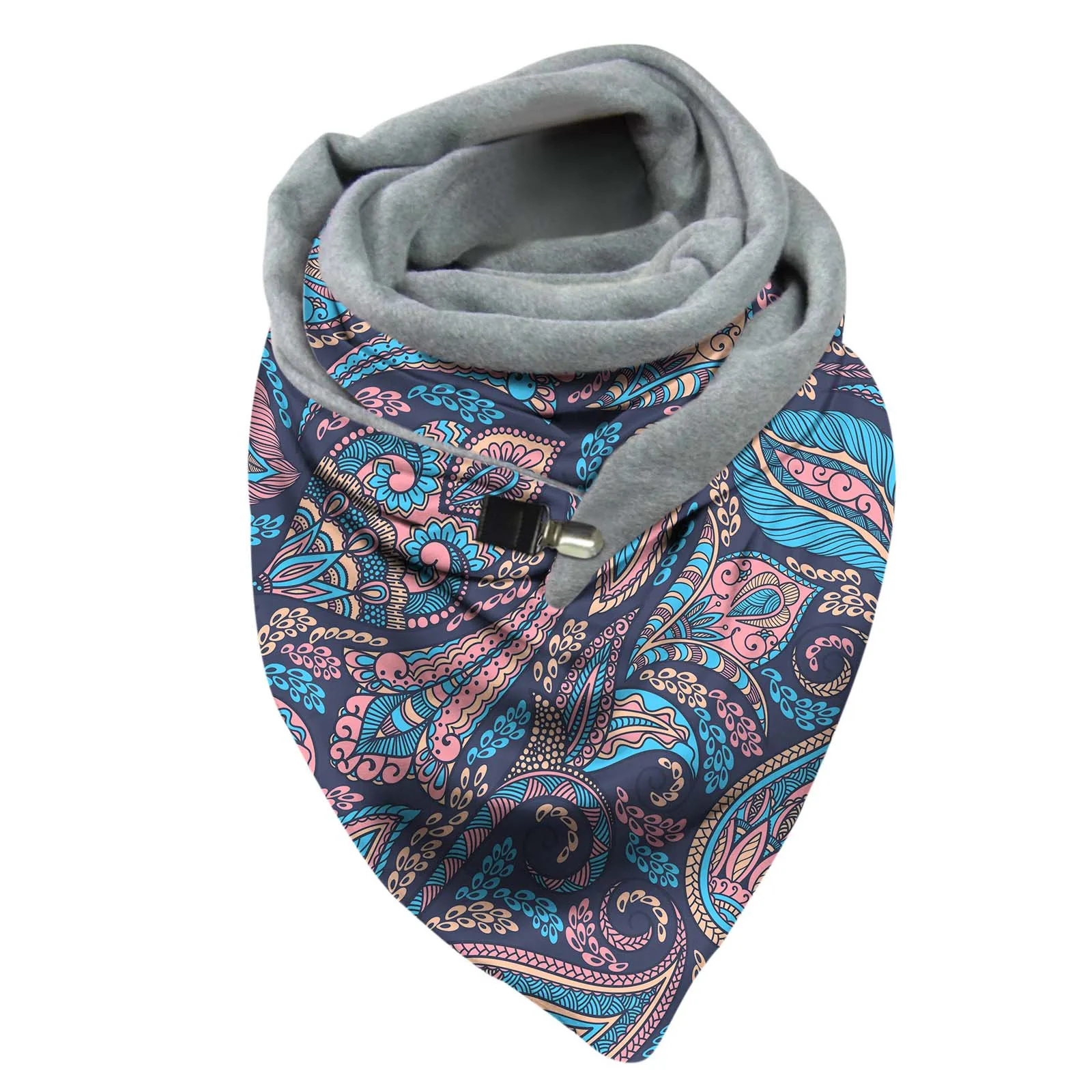 Модный зимний женский шарф с принтом листьев на пуговицах, мягкий Повседневный теплый женский шарф, шаль, хиджаб, шарф, новинка 2022, бандана