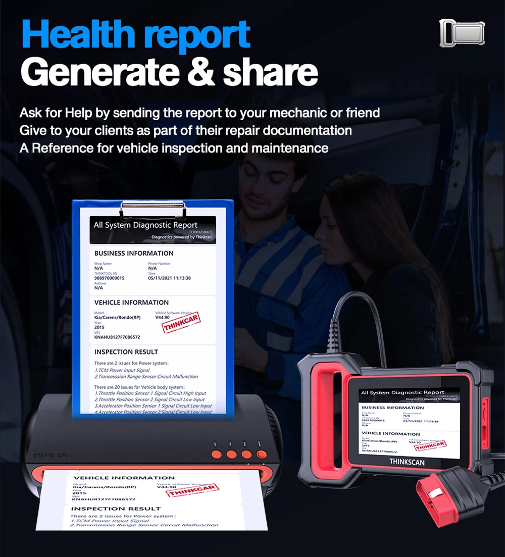 Эта функция автомобильного сканера поможет вам сохранить любую информацию, которую вы хотите хранить.В то время как ваш автомобиль имеет проблемы, вы не можете решить это, вы можете попросить вашего друга или более профессиональных машин для диагностики, и запись экрана может держать работу для вас в следующий раз.Диагностический отчет может помочь вам сэкономить время на анализ проблемы, это очень отлично подходит для ремонтной мастерской, механики могут Распечатать отчет о транспортном средстве для клиента.