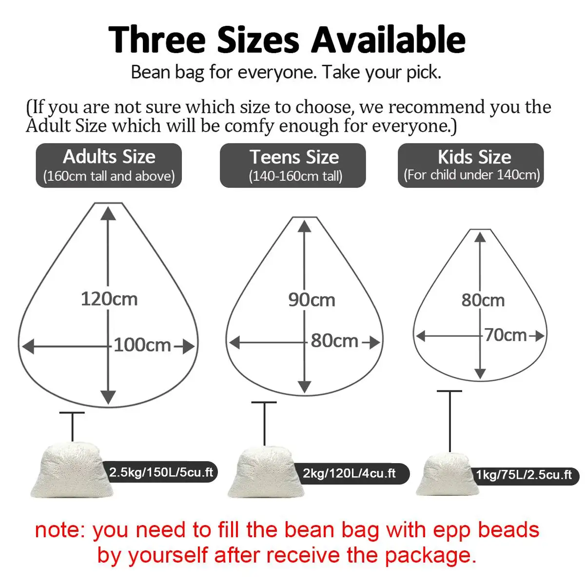 Особенности:-Высококачественная Вельветовая мягкая и дышащая ткань. Отдельная крышка и наполнение для легкой очистки, машинной стирки или ручной стирки.-Мы модернизировали ткань до более плотного, более мягкого, более роскошного материала, построенного для испытания временем. С этим уютным чехлом для бобов сумки обязательно станут Вашим любимым местом для отдыха.-Высококачественные молнии и отобранные вручную ткани, которые сшиты двойным образом для максимальной прочности и долговечности. Чехлы мягкие, мягкие и чувственные на ощупь. Но он также устойчив к пятнам и обесцвечиванию.-Стиральная машина и сушилка безопасны для вашего удобства. Удлиненная застежка-молния для легкого удаления. Наши высококачественные чехлы из микро-волокна-идеальное сочетание комфорта, легкости в уходе и долговечности.