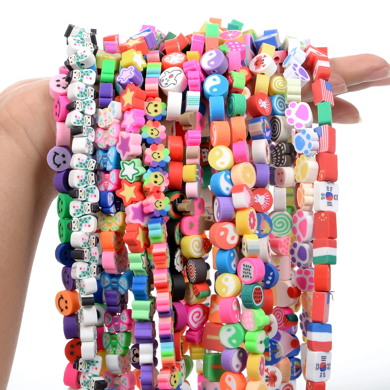 10 мм 30 шт. фрукты животные улыбка смешанные цветные бусины полимерные свободные космические глиняные бусины аксессуары для браслетов