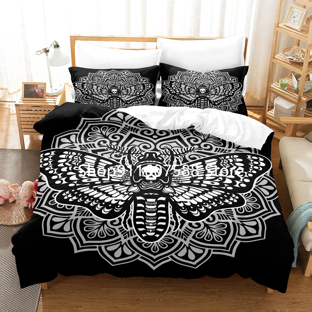Комплект постельного белья Black Death Moth, Комплект постельного белья с готическим черепом, пододеяльником и бабочкой, 23 шт., Роскошный домашний текстиль с Луной и звездами