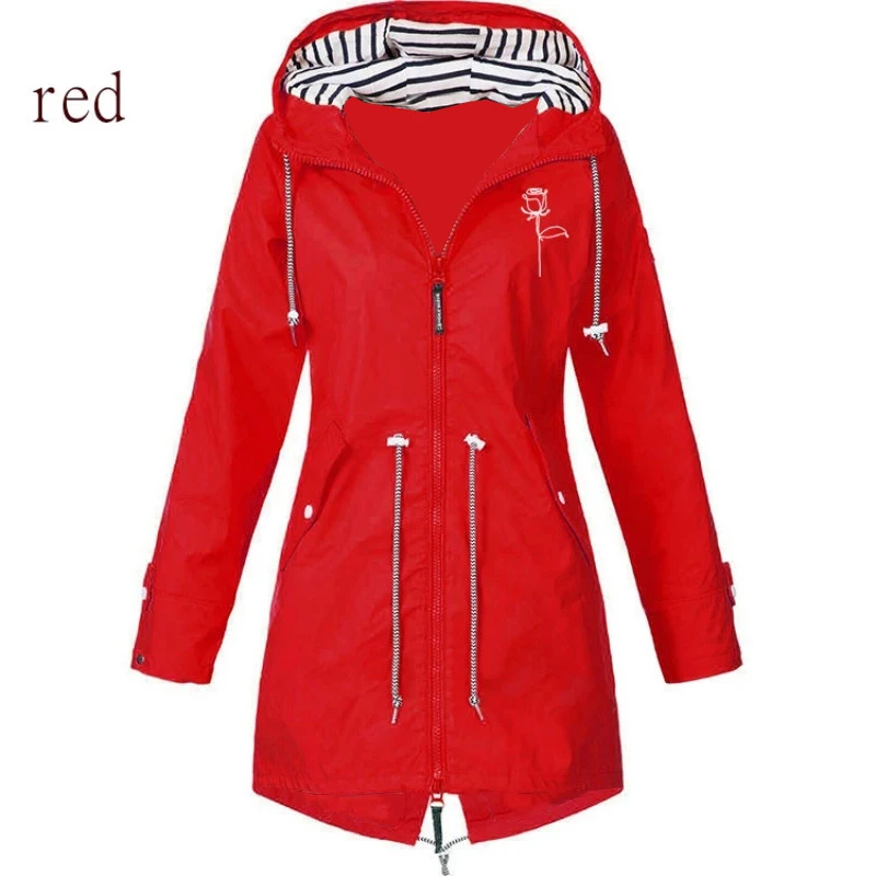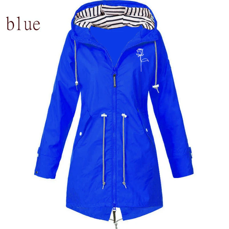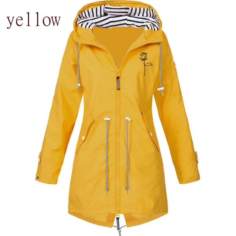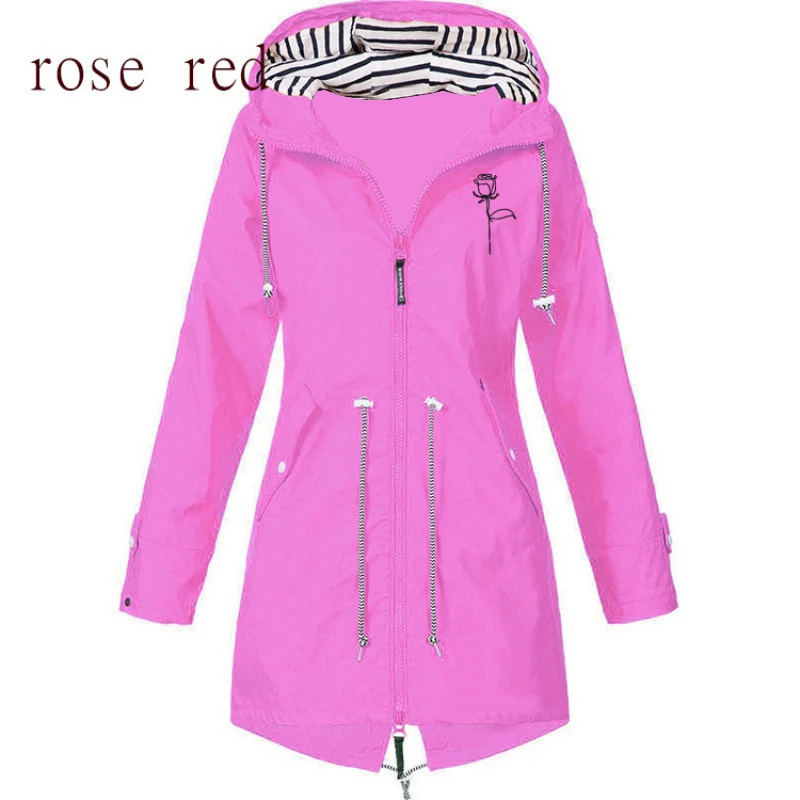 Новая женская многоцветная водонепроницаемая куртка, Классическая Длинная ветровка, дождевик, уличное пальто с капюшоном для альпинизма, женская одежда
