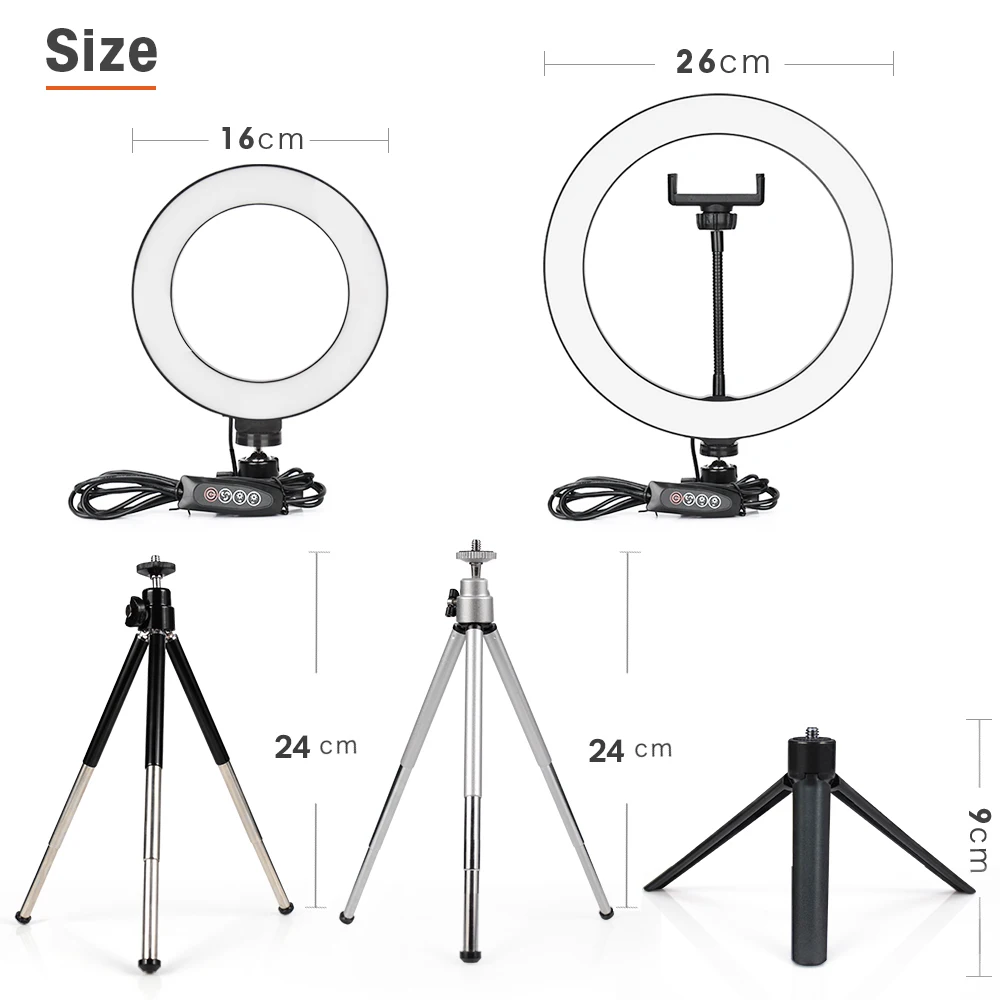 Тип 6: 26 смлампа 24cmS подставка (26 см кольцевой светильник +Зажим для телефона+СеребряныйТрехсекционный железный штатив)