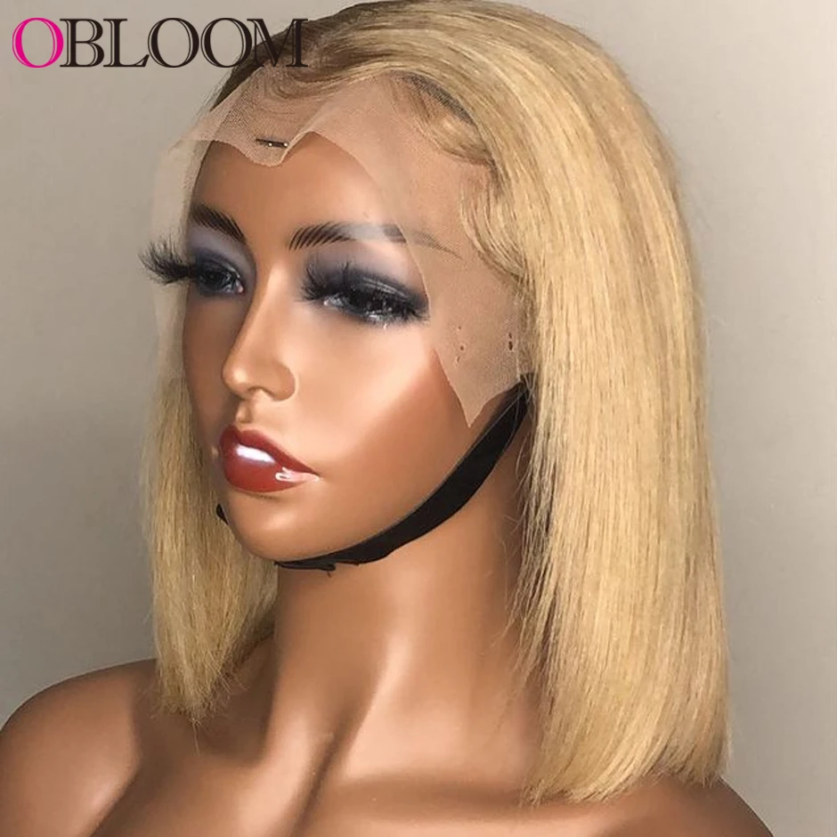 Короткий парик Боб медовая блондинка 613 13*4 парик на сетке спереди парики из человеческих волос 150% прямые предварительно выщипанные отбеленные парики с узлами для женщин Remy