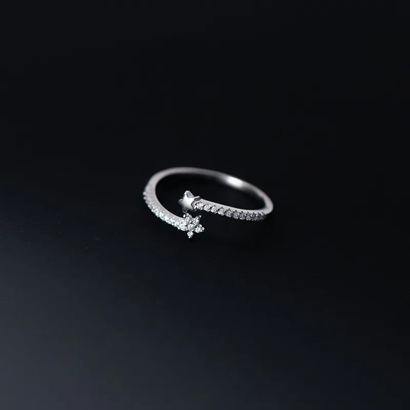 Женское Открытое кольцо WANTME, из серебра 925 пробы, с кристаллами циркония и звездой, модное изысканное Ювелирное Украшение для вечеринки