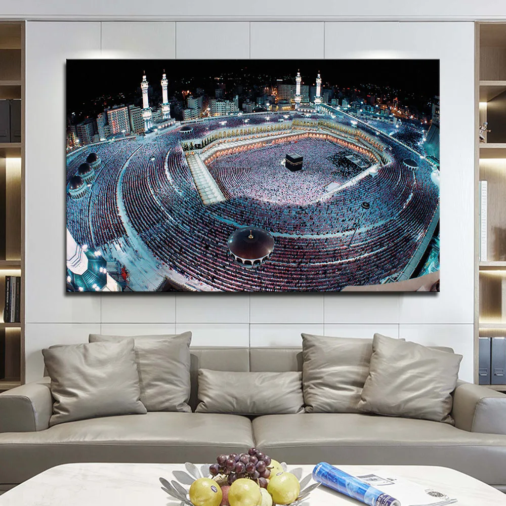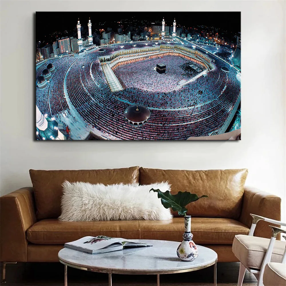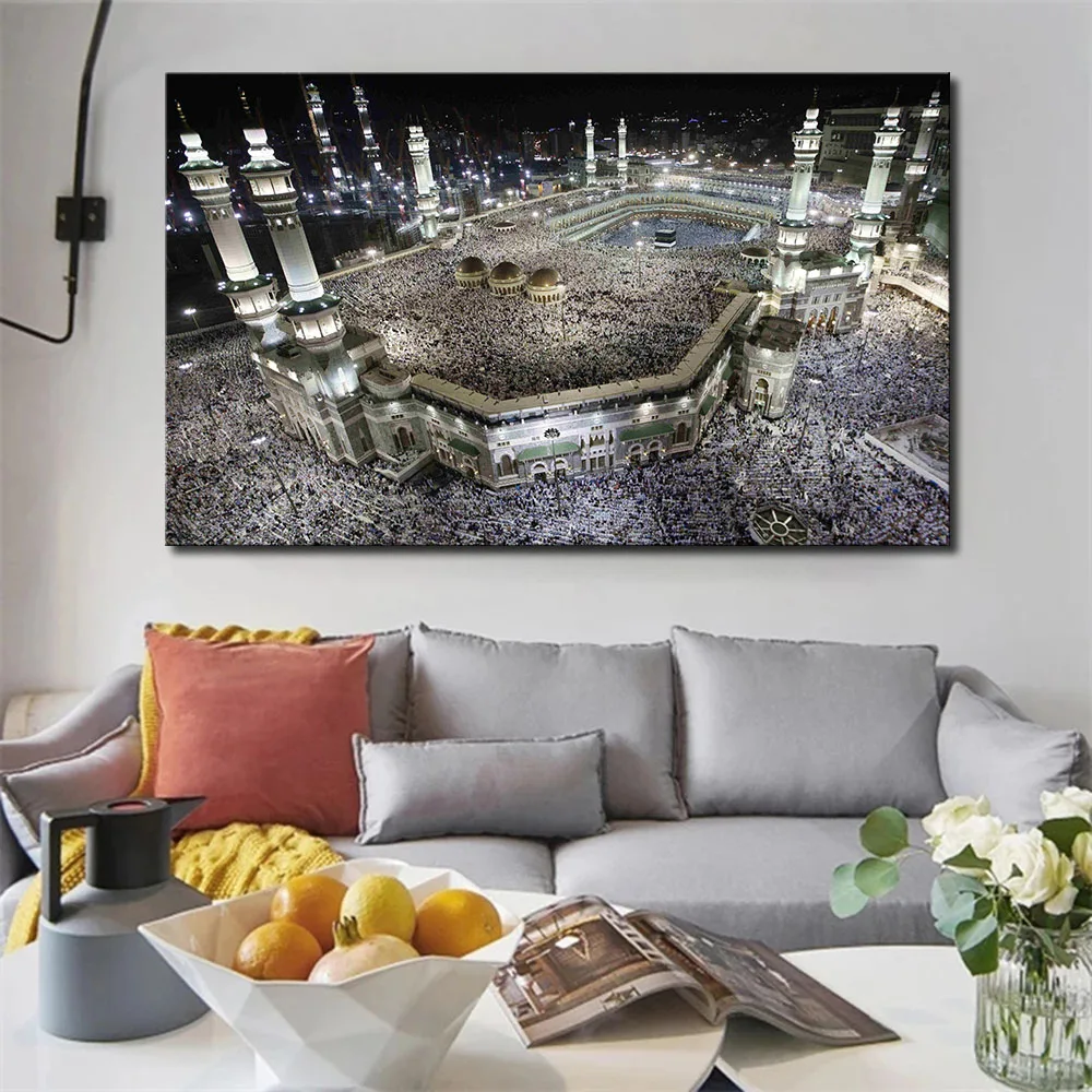 Плакат с изображением ночного пейзажа Исламской мечети, Картина на холсте, Современное украшение для дома, картины, настенные картины для декора гостиной