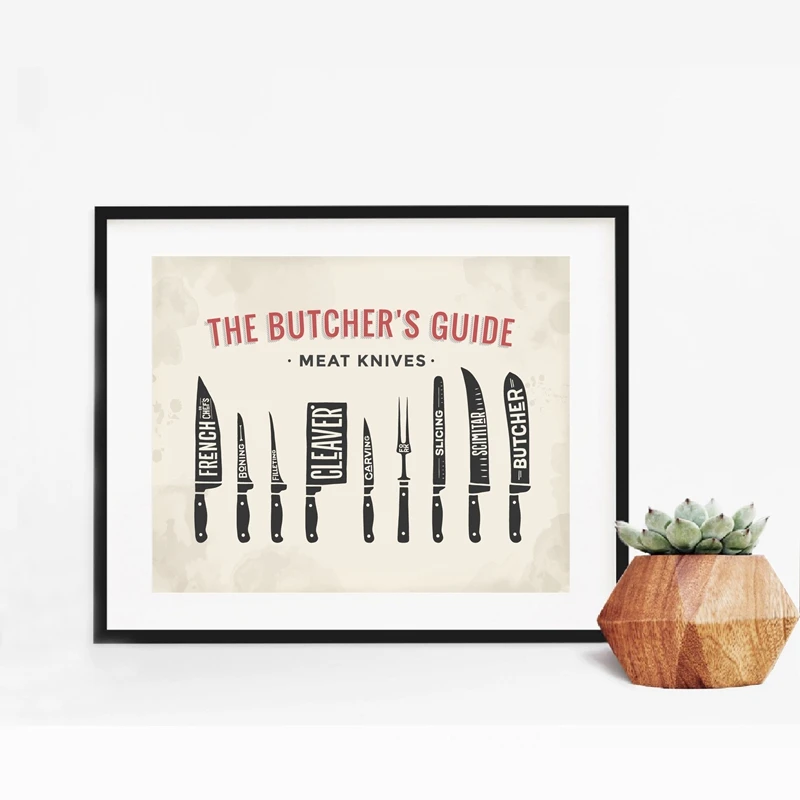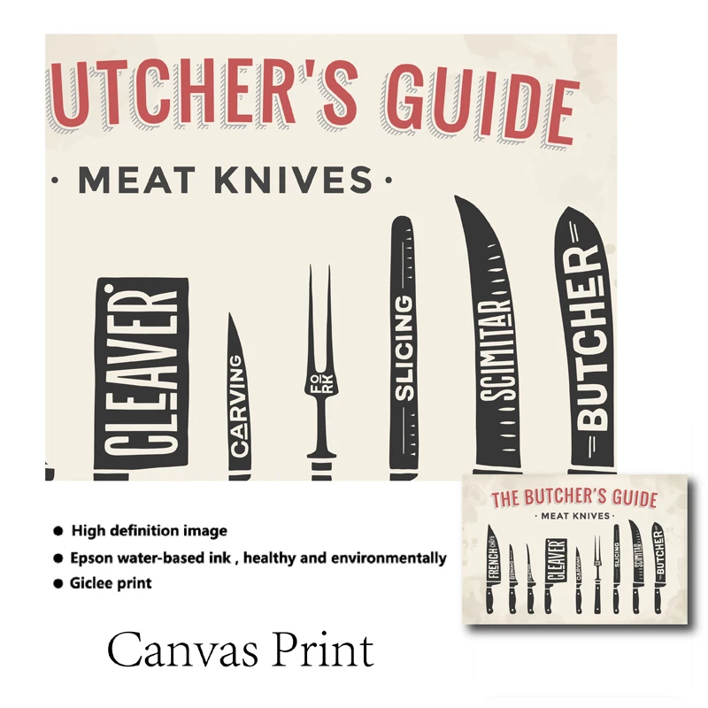 Постер с изображением мяса, ножей, мясника, печать на стене мясника, художественный декор, схема мясника, кухонная настенная Картина на холсте