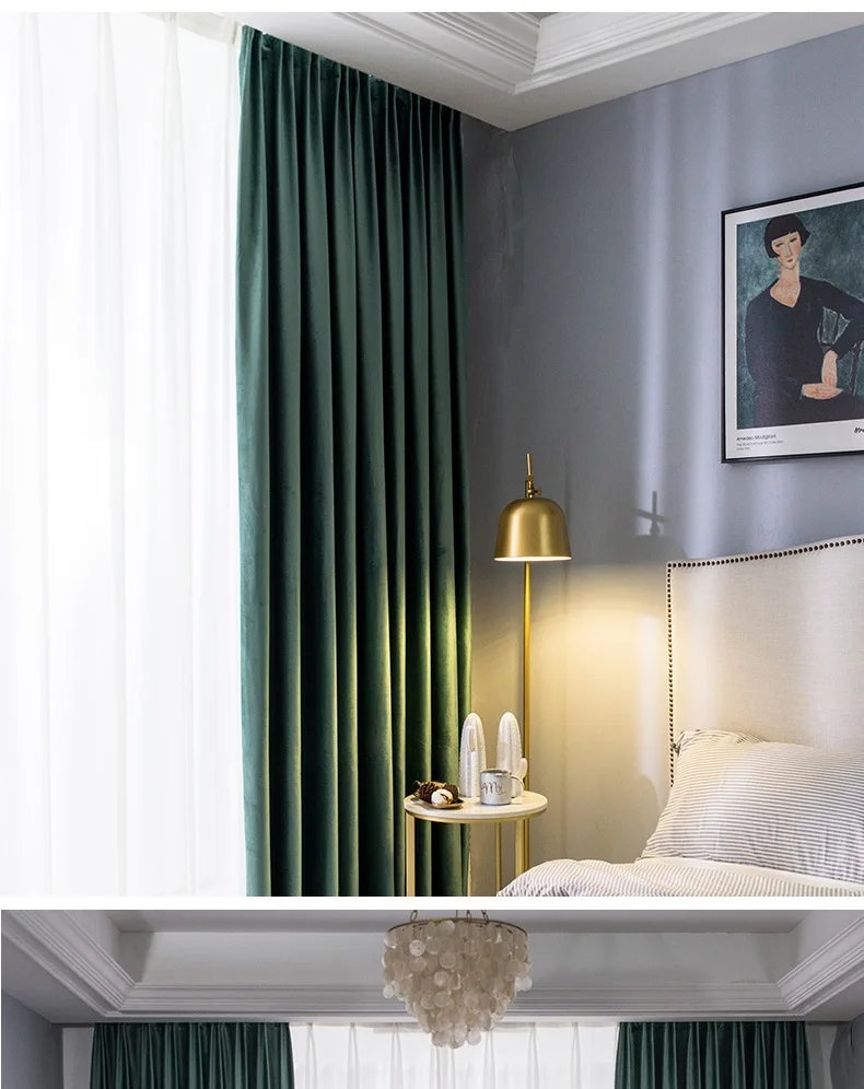 Бархатные шторы в скандинавском стиле для гостиной, темно-зеленые б...