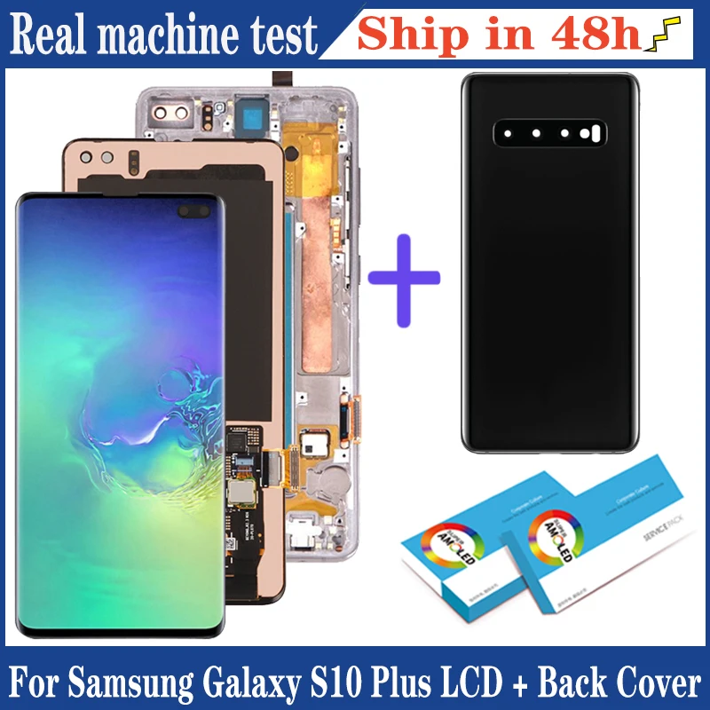Super Amoled дисплей для Samsung Galaxy S10 Plus SM-G9750 G975F Полный ЖК сенсорный экран дигитайзер запасные части с задней крышкой