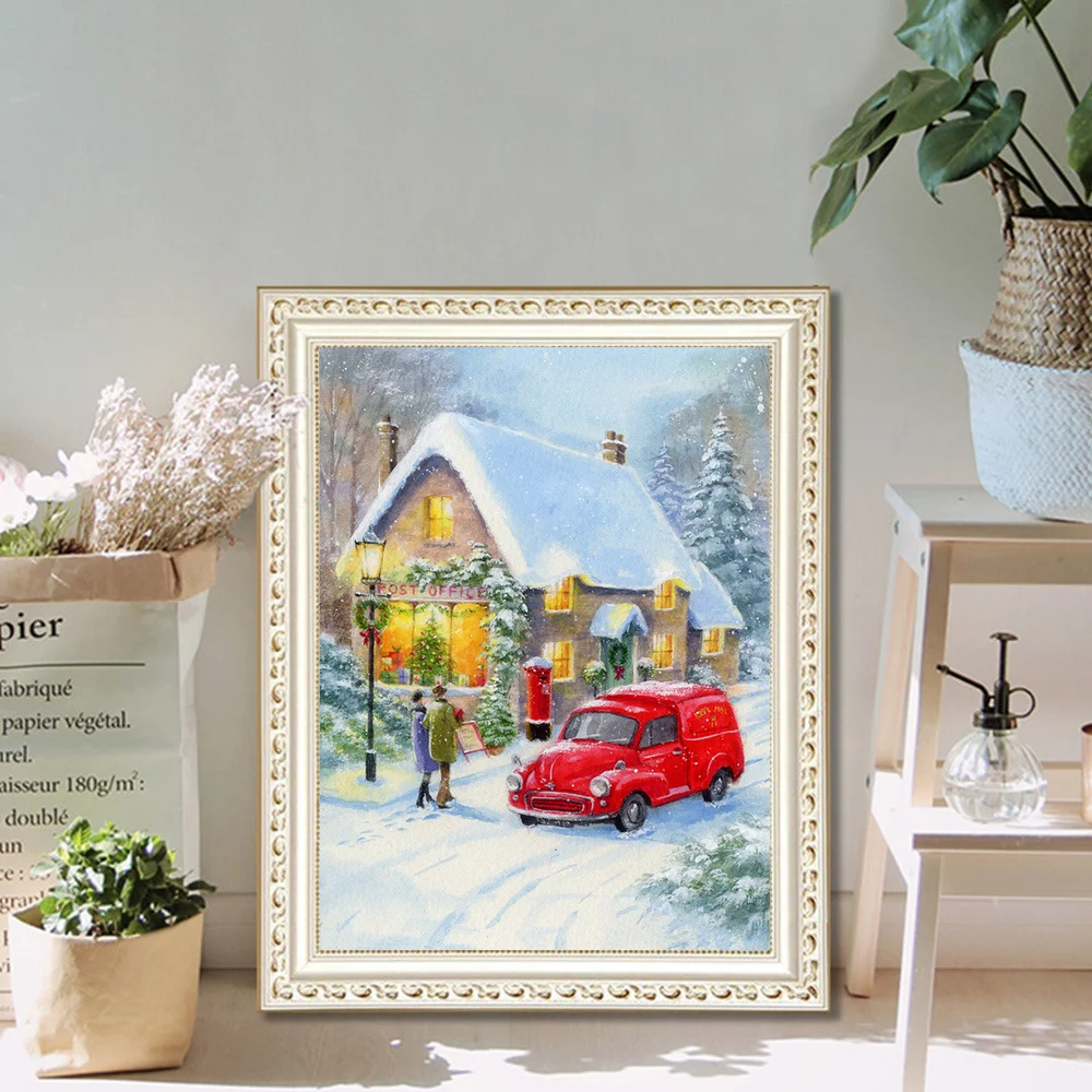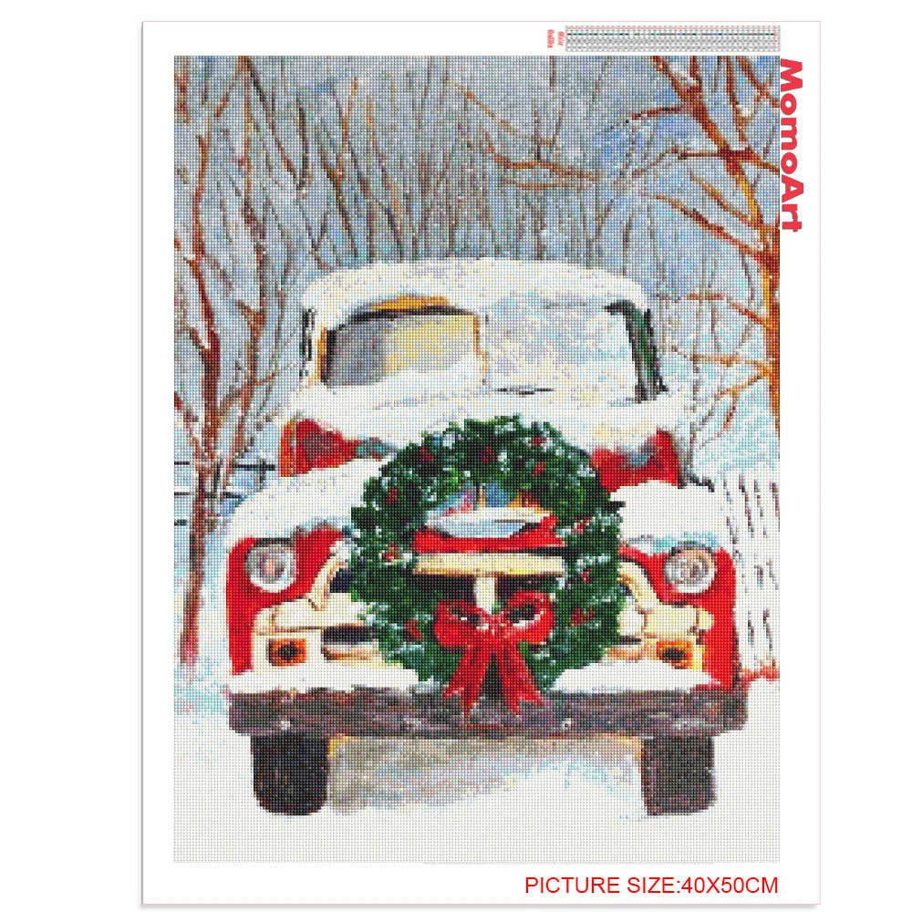 Алмазная мозаика MomoArt сделай сам, пейзаж Красной машины, полная вышивка, квадратная Алмазная вышивка, зимняя мозаика, вышивка крестиком, домашний декор