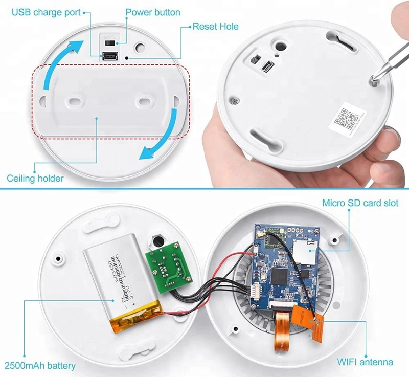 1080P HD P2P сетевая камера Plug and Play Домашняя мини камера безопасности Детский Монитор CCTV Беспроводная Wifi IP камера детектор дымаРуководство по эксплуатации:С высоким разрешением 1080P мини-объектив встроен в зарядное устройство, что делает его трудно заметить. Очень подходит для того, чтобы обратить внимание на безопасность вашего дома или отслеживать некоторые вещи. Вы можете узнать, что происходит, когда вы не дома, установите приложение на свой телефон (iOS/Android). Это легко установить. Вы можете просматривать онлайн-видео с любого смартфона, который может получить доступ к Интернету. Даже если вы не можете получить доступ к Интернету, вы можете вставить карту micro SD для записи видео. ** Обнаружение движения-камера обеспечивает отличное Обнаружение движения. При обнаружении движения срабатывает сигнал тревоги, и мгновенное сообщение или уведомление по электронной почте будет отправлено автоматически.Слот для tf-карты этой камеры находится на материнской плате, вам нужно отвинтить заднюю крышку камеры и установить tf-карту.Характеристика:* Функция Wi-Fi: Да, удаленный мониторинг через смартфон в любое время и в любом месте.* Совместимость с iPhone, iPad, телефонами Android и т. д.* Мини-камера Аудио Видео рекордер* Функция камеры.* Видеорегистратор с детектором движения.* Разрешение видео: 1920*1080P* Формат видео: AVI* Количество кадров для записи: 30 кадров в секунду* Автоматическая настройка баланса белого* Микрофон: встроенный (синхронная запись аудио и видео сигналов)* Регистраторы: 16-уровневая ИКМ 24 кГц формат WAV* Напряжение зарядки: DC-5V* Интерфейс Тип: мини 5-контактный разъем USB* USB порт: Стандартный 1,1/2,0 USB порт* Время работы: 2-3 часа записи видео* Время зарядки: 3 часа* Память: 32 ГБ/64 ГБ