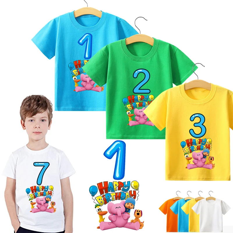 Детская футболка Pocoyo с цифрами на день рождения, детская одежда, цветная детская футболка для мальчиков и девочек, детская хлопковая одежда, подарок на день рождения