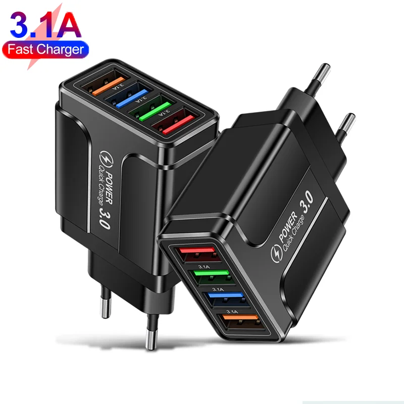 Новинка Быстрая зарядка 3,0 USB зарядное устройство 4 порта 3.1A QC3.0 Быстрая зарядка EUUS быстрое зарядное устройство для IPhone Samsung Xiaomi планшета